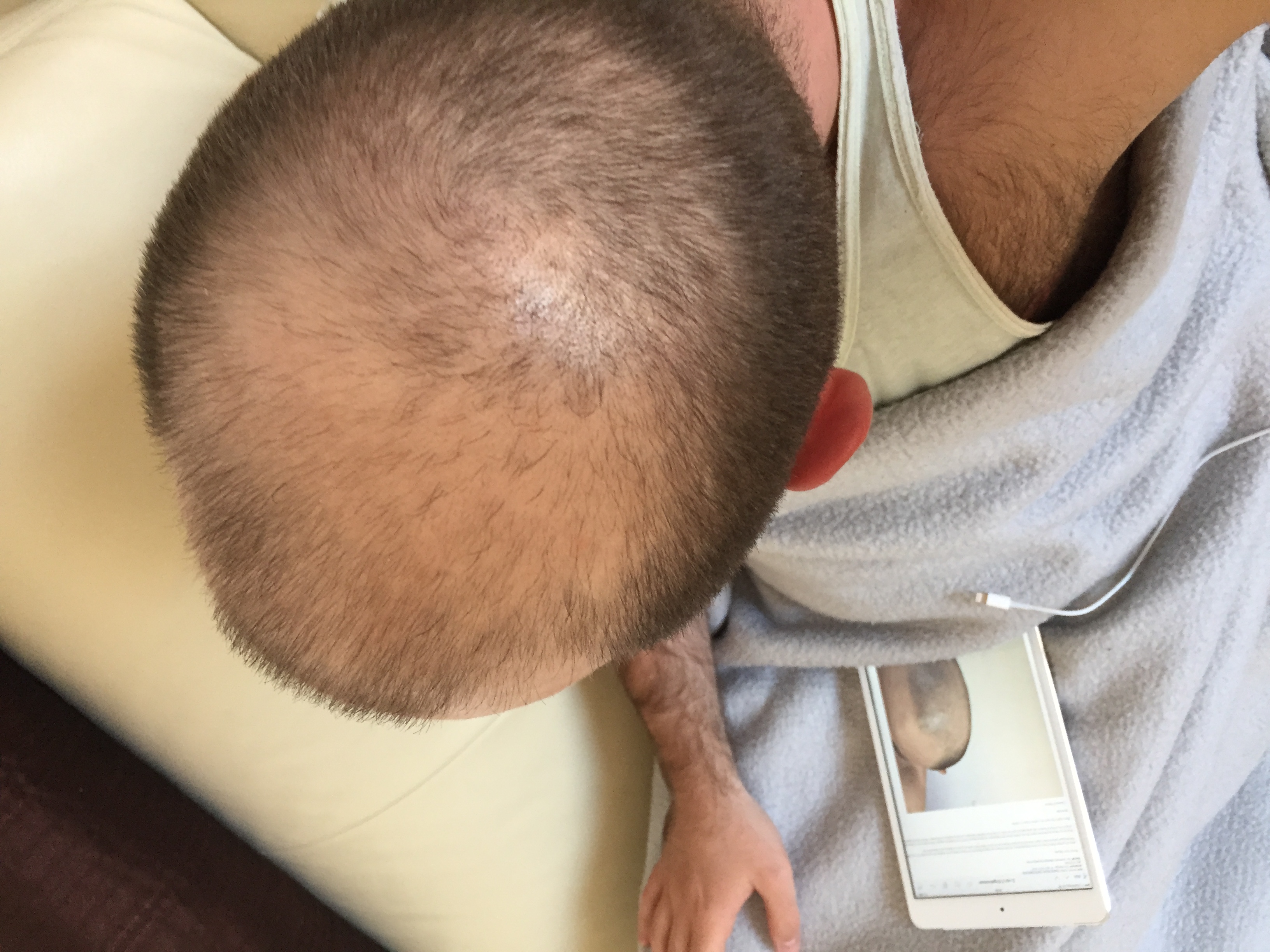 Ich hoffe natürlich auf maximalen Erfolg auf meinem Kopf, auf ein maximales Anwachsen und eine bessere Optik als auf meinen eingangs geposteten Fotos. Wir werden sehen...