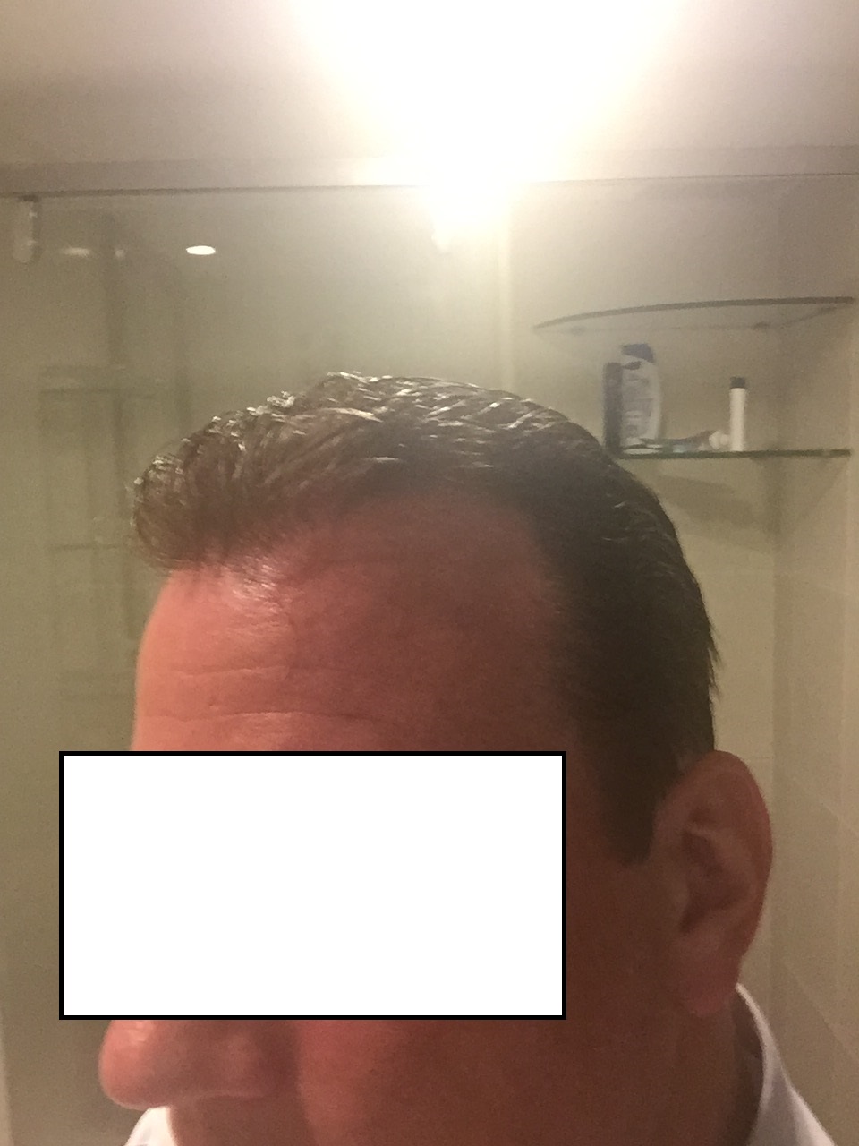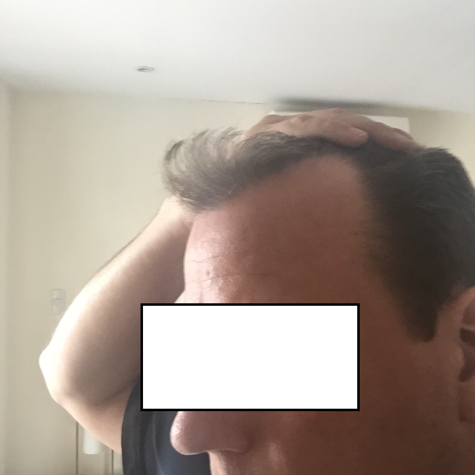 Ich leide seit meinem 20igsten Lebensjahr an Haarausfall, und zwar primaer hat es die "schoenen" Geheimratsecken getroffen. Diese waren schon mit ca. 25 Jahren so ausgepraegt, wie Ihr diese nun aktuell auf den Bildern sehen koennt. Heute bin ich 40 Jahre alt. Vor ca. 1,5 Jahren kam es mir so vor, als ob auch der vordere mittlere Teil meiner "Haarpracht" ausduennt (vielleicht auch nur Einbildung). Dennoch habe ich dann (vor 1,5 Jahren) mit Propecia angefangen... jedoch nur zwei Tabletten je 1mg in der Woche... aber dies regelmaessig bis heute. Haarausfall habe ich auf jeden Fall keinen mehr unter Propecia.