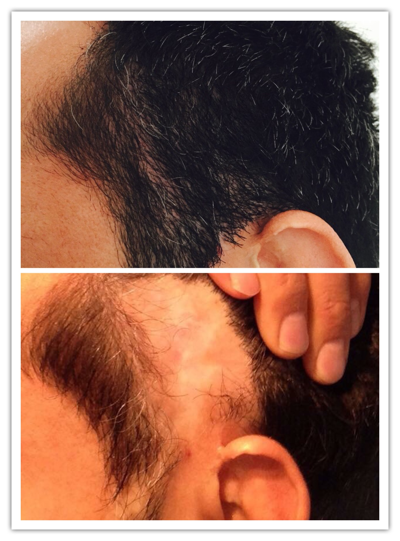 Hi, ich habe heute vor genau vier Monaten meine Geheimratsecken und eine unfallbedingte, kahle Stelle über meinem linken Ohr transplatieren lassen. Das Ergebnis ist super, zumal mir Ärzte in Düsseldorf gesagt haben, das auf dem Narbengewebe Haare nicht so dicht wachsen würden. Fotos füge ich bei.