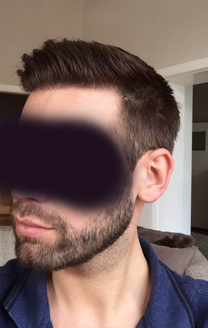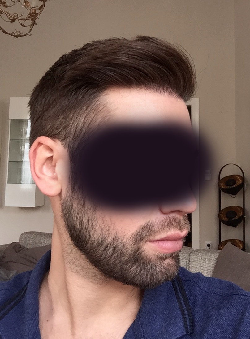 Im Anschluss an die OP hatte ich kaum Schmerzen. Die Schwellung blieb für ca. 10 Tage bestehen. Die verpflanzten Grafts sind kaum ausgefallen und haben direkt begonnen zu wachsen. Nach ca. 4 Monaten kamen noch ein paar "neue Haare" hinzu. Die Haare wurden im Laufe der Zeit immer dicker/dichter. Das Ergebnis 9 Monate nach der HT könnt ihr auf dem letzten Bild sehen. Ich bin jetzt schon total zufrieden, obwohl viele ja erst nach 12 oder 18 Moanten vom endgültigen Ergebnis sprechen.