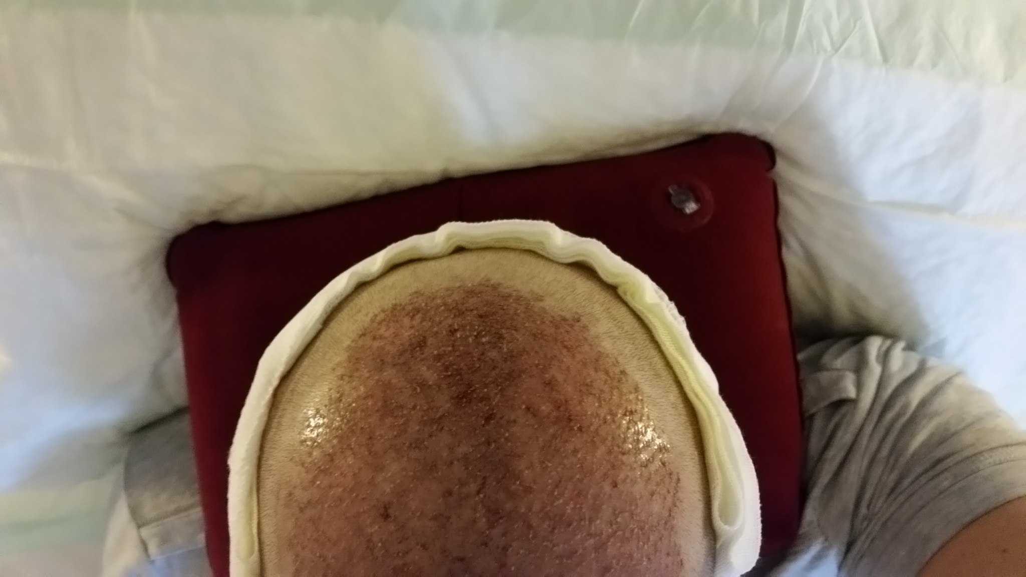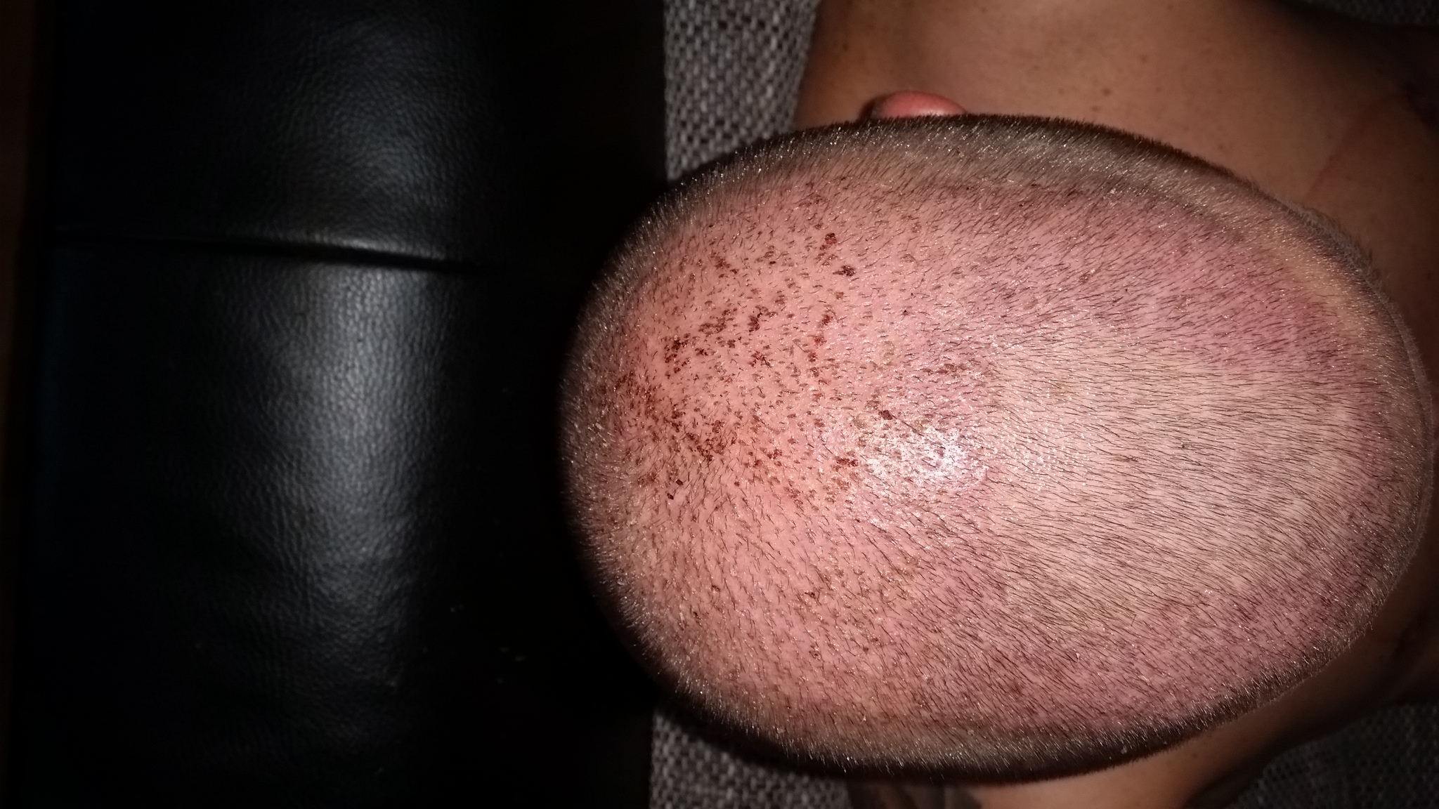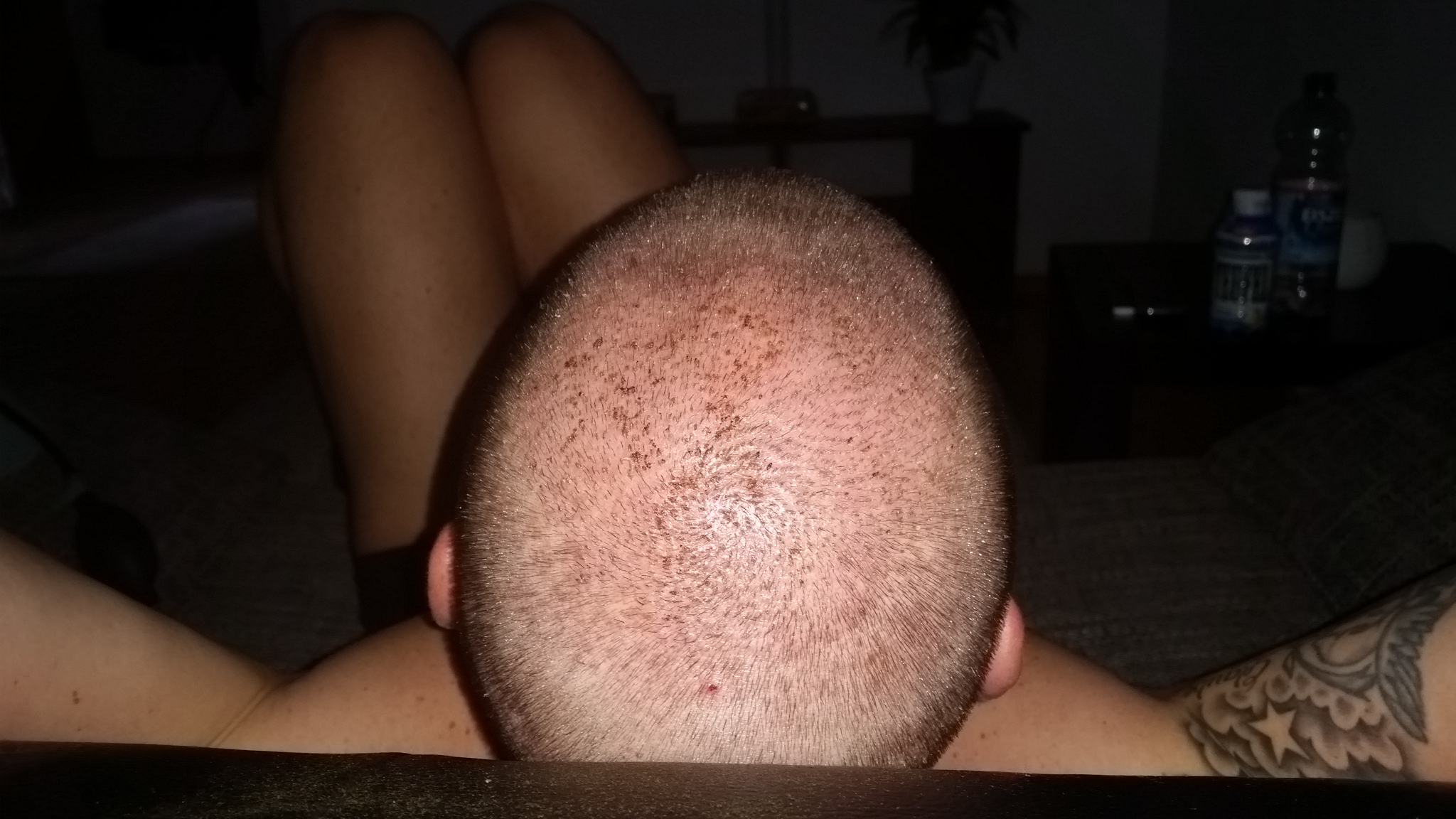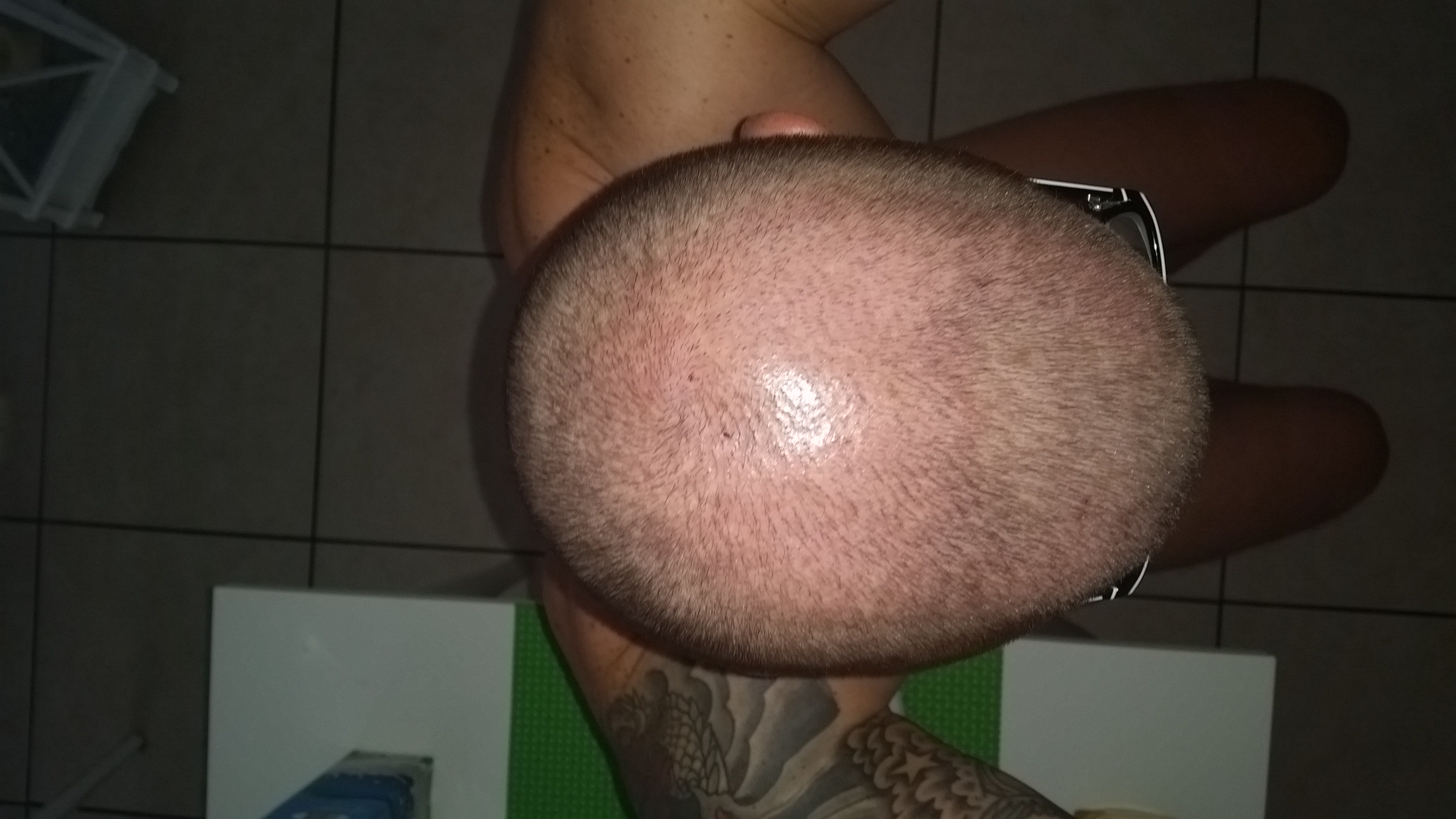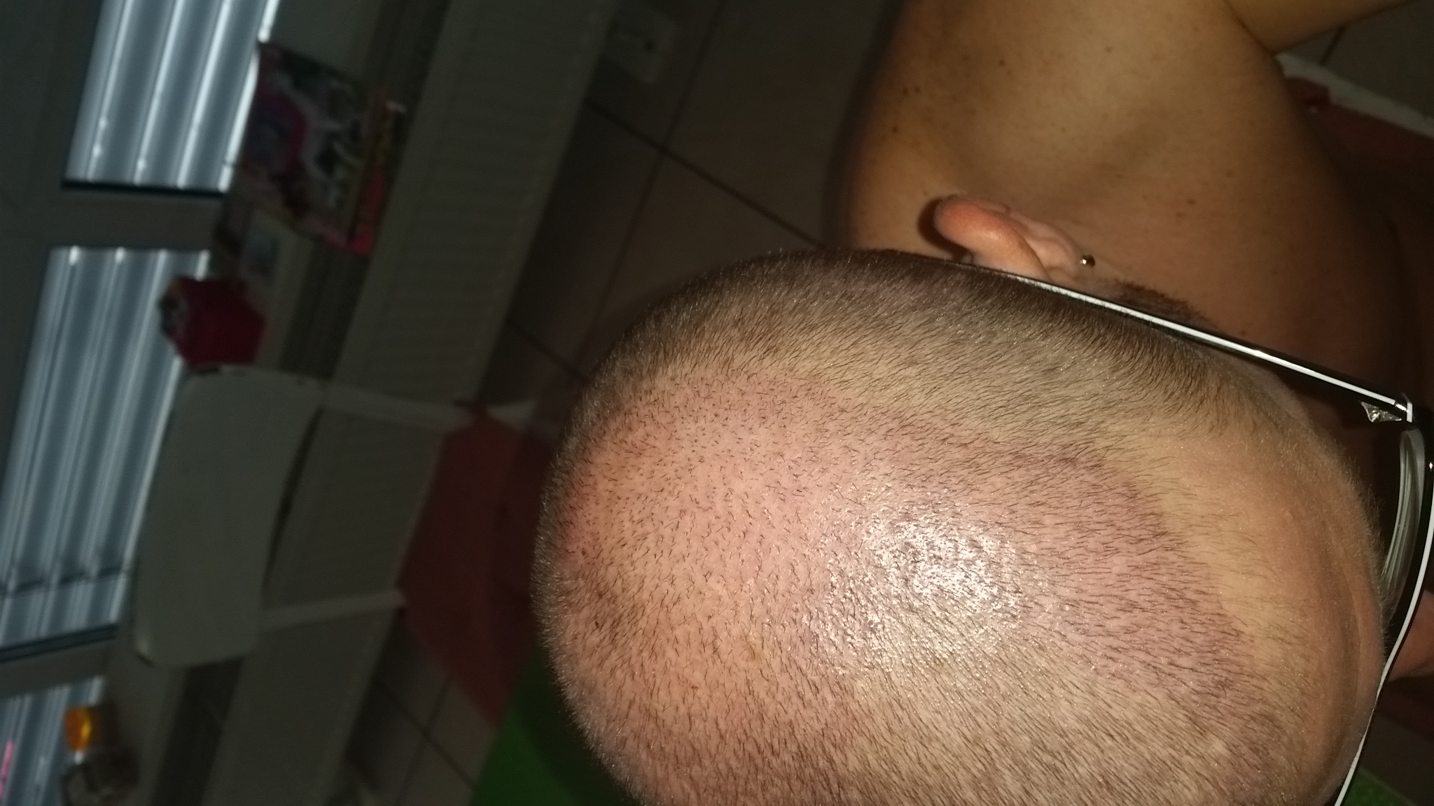 Mittlerweile 7 Tage post OP,die Krusten gehen schon seid gestern ab.Seid heute benutze ich Arganöl,welches dem Kopf unglaublich gut tut.....Jedenfalls ist der Heilungsverlauf schon sehr gut vorangeschritten.Auch sind über den ganzen Kopf schön Gleichmäßig kleine Häärchen verteilt.Meine verletzte Stelle ist wohl wirklich minimal.Ach was soll ich sagen.....Ich freue mich
