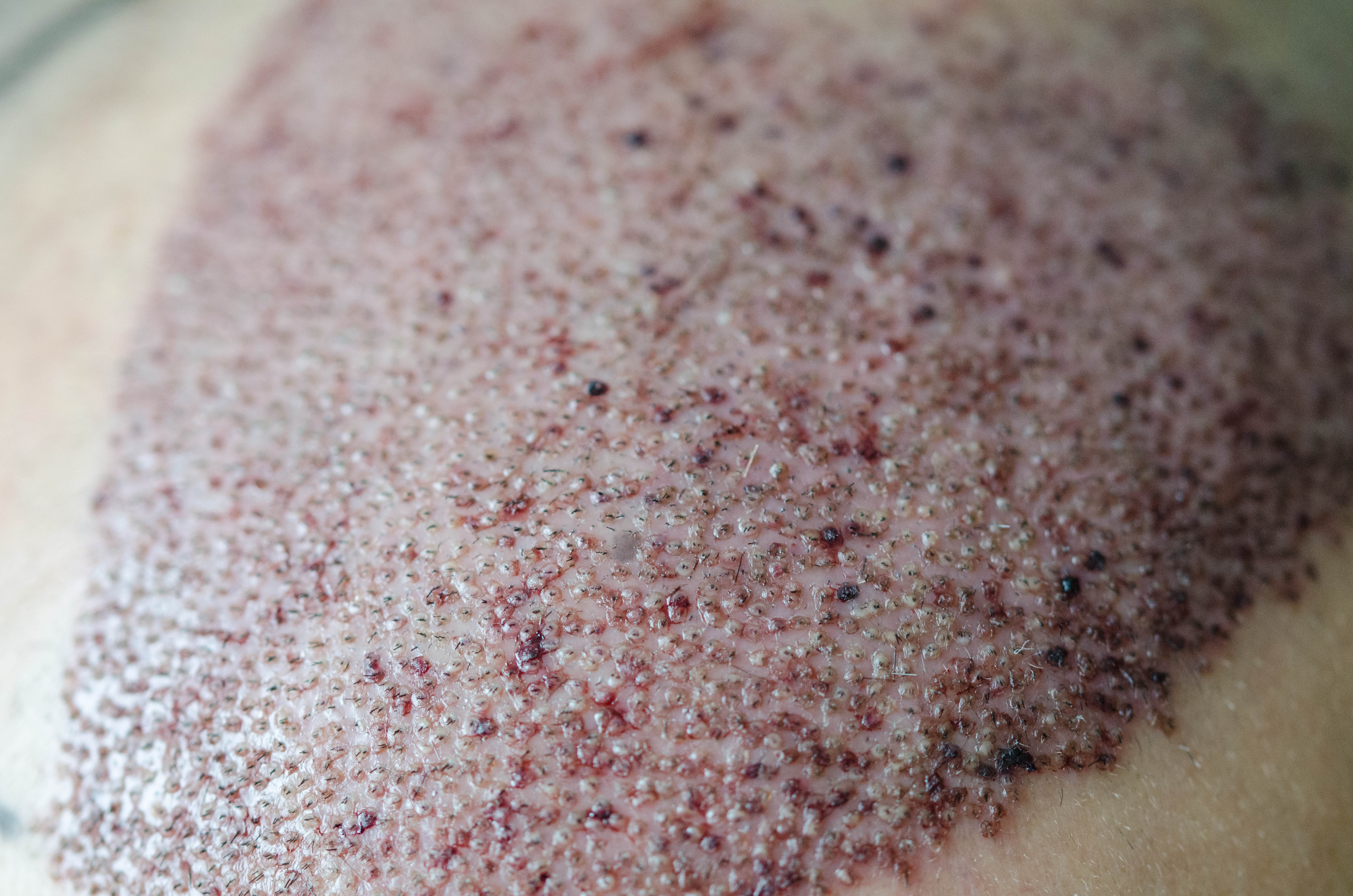 Nach meiner Schätzung sind ungefähr 60 % der transplantierten Grafts ausgefallen und die Rötung ist völlig abgeklungen.