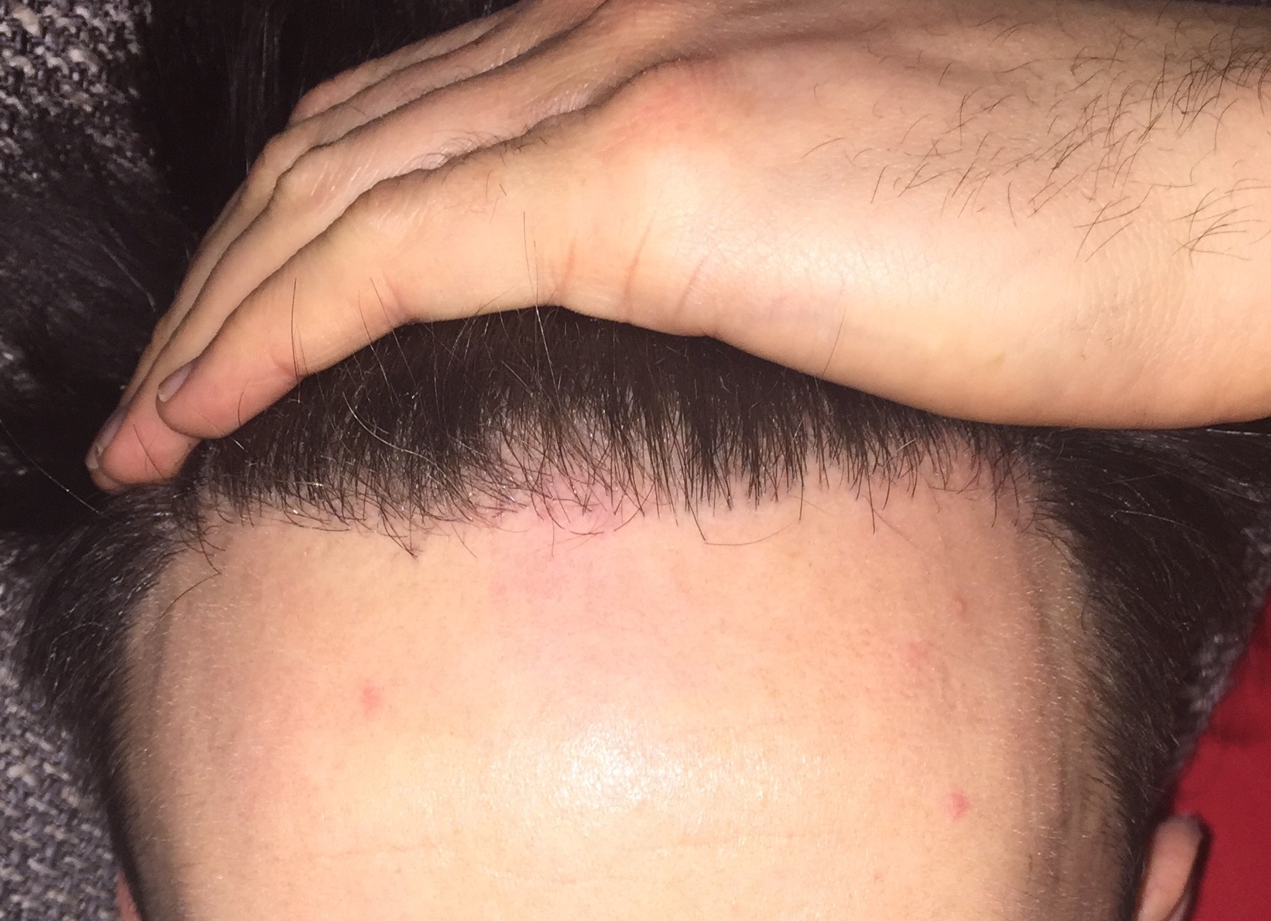 Stell doch mal ein paar Bilder von oben ein, ohne die Haare mit der Hand zurückzuhalten (Bestenfalls nur mit Tageslicht).