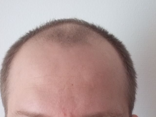 Ich wende das nur 1 cm hinter der Haarlinie bis zur Tonsur an. In die Tonsur mache ich nichts, weil ich es da nicht vernünftig anwenden kann. Ich sehe ja nichts und ich habs nie gleichmäßig hinbekommen ohne dass meine Frau nachhelfen musste. Allerdings bin ich auch 1,95 m groß und so kann mir eh niemand auf die Tonsur schauen Very Happy