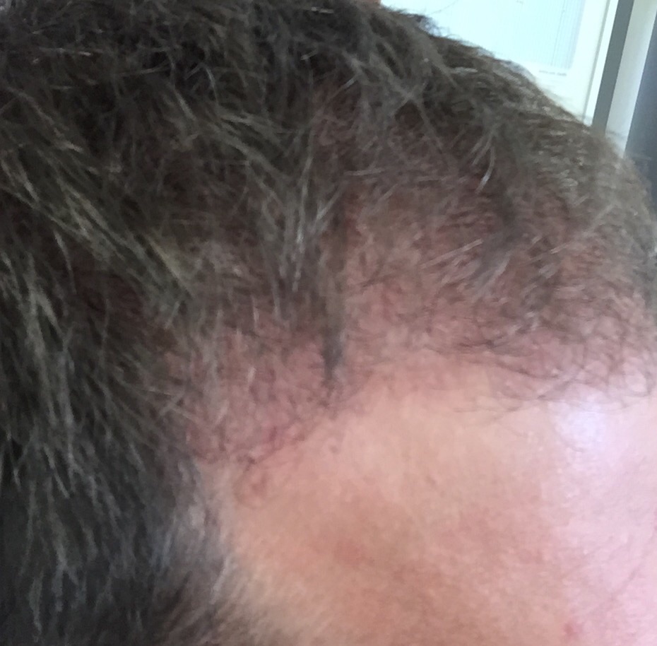 Exakt 2 Monate post OP. . Rötung soweit in Griff. Penaten Creme über Nacht hat echt geholfen. . Mein 3mm Haarschnitt ist auch langsam Geschichte. (Gott sei dank) 😄 Jetzt hoffe ich jeden Tag darauf, dass vorne die Ecken endlich anwachsen.