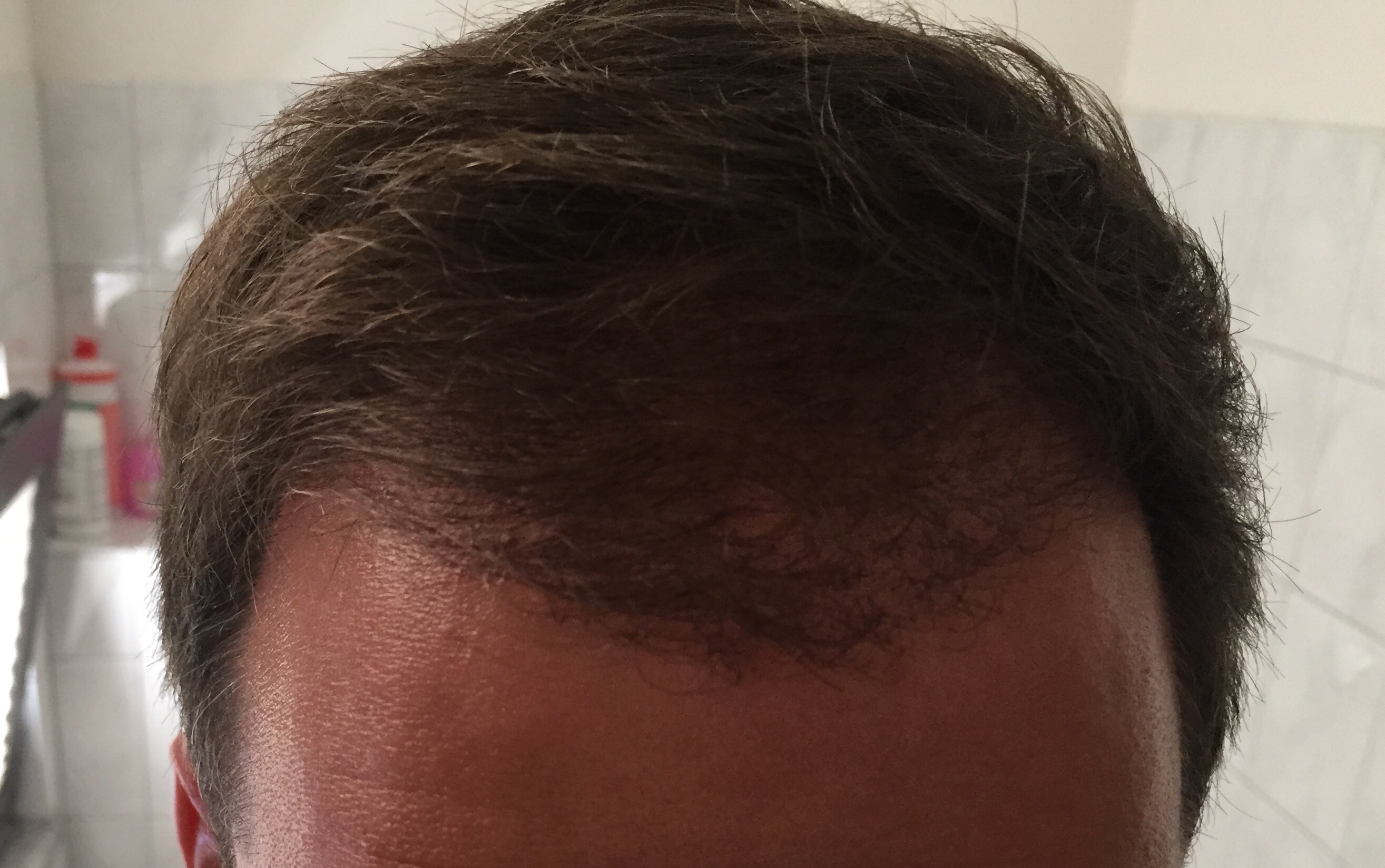 Der dritte Monat läuft noch und neigt sich nächste Woche dem Ende entgegen. Also langsam macht es sogar Spaß jeden Morgen in den Spiegel zu schauen. Die Haare sind noch sehr fein, aber hab euch mal zwei Nahaufnahmen gemacht in der Mittagspause. Gruß und euch ein schönes WE