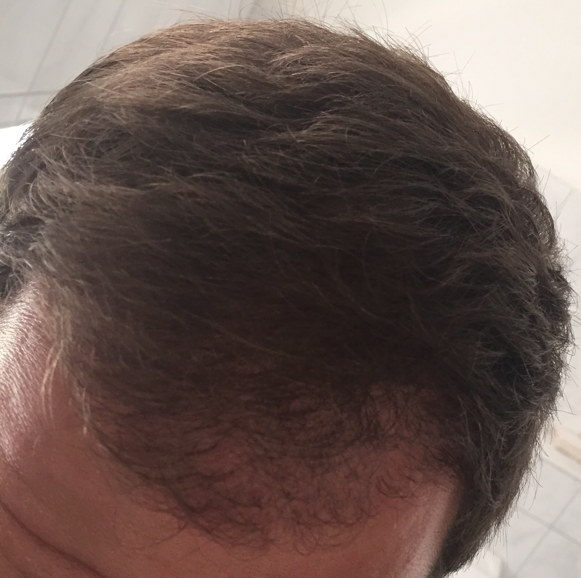 Halbes Jahr ist exakt rum. Ihr seht ein Bild von oben, eins mit klitschnassen Haaren und eins mit trockenen Haaren (Frontansicht). Ich bin zufrieden bisher. Die rechte Seite ist, wie man sehen kann, noch etwas dichter. Dennoch kein Vergleich zu vorher und ein paar Monate habe ich ja noch Zeit.