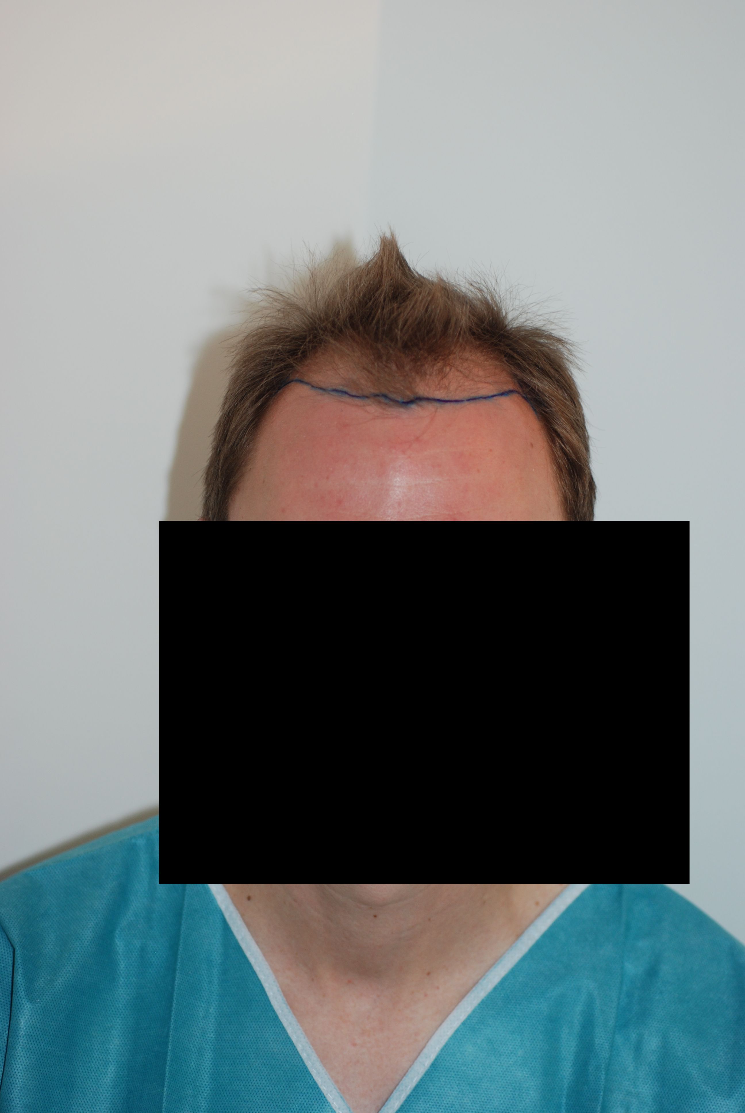 Nachdem ich die OP Kleidung angezogen hatte, ging es zum Haarlinie einzeichnen. Hier hatte ich die Haarlinie auch nochmal geändert und nicht die ausgearbeitete Linie von dem Beratungsgespräch genommen. Der Dr. nahm sich viel Zeit, um gemeinsam die Haarlinie nochmals neu zu erarbeiten. Hier war dann auch klar, dass ca. 3000 Grafts nötig sein werden. Anschließend ging es in den OP Raum. Betäubung war absolut zu ertragen. dann machten sich die OP Schwestern an die Arbeit und entnahmen die Grafts. Gefühlt war das der anstrengenste Teil des ganzen Tages, weil man ca. 2,5 - 3 Std. auf einer Massageliege liegt und das auf dem Bauch. Bewegen sollte man sich auch nicht zu viel dachte ich mir, die Grafts sollten ja sauber entommen werden können Smile
