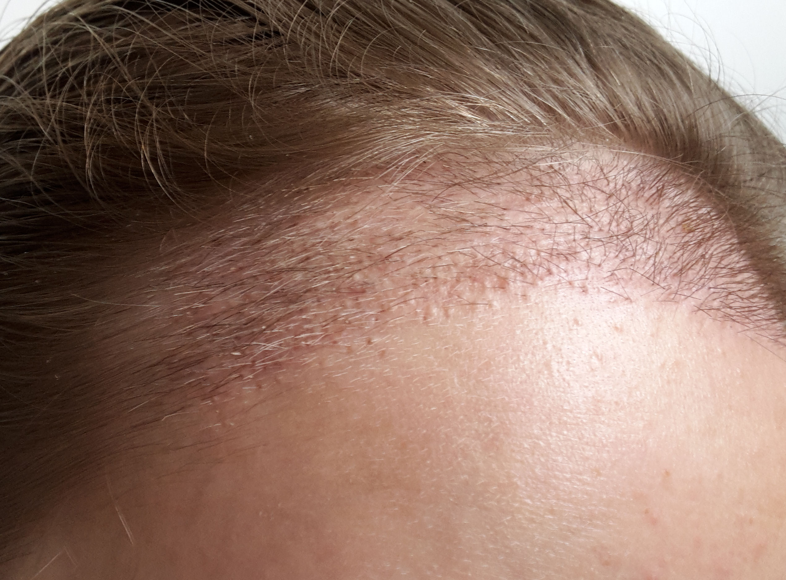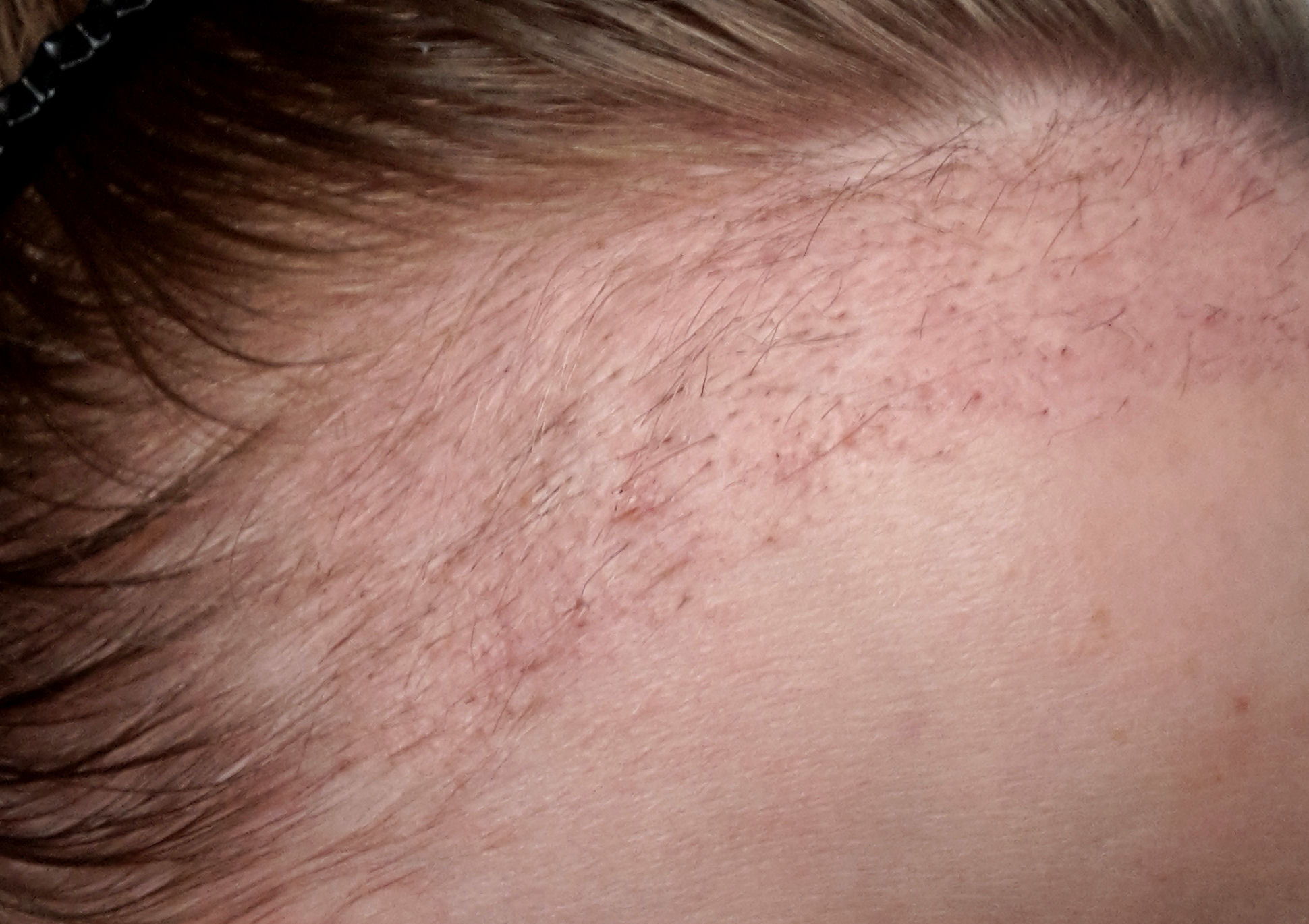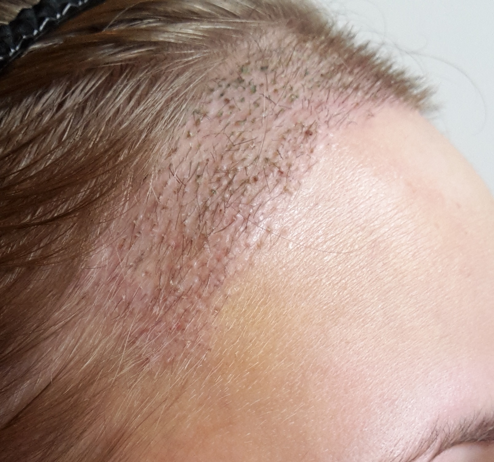 Mein Hinterkopf ist taub, die Narbe zieht, da alles sehr gespannt ist. Zwischen den Augenbrauen und oberhalb dessen hatte ich eine leichte Schwellung/Beule welche ich viel gekühlt habe und ab Tag 4 wieder verschwunden ist.