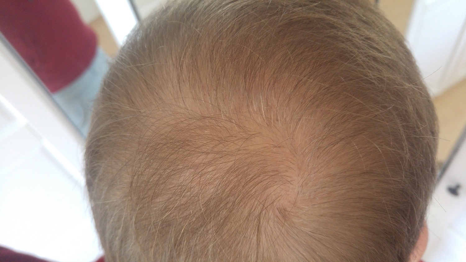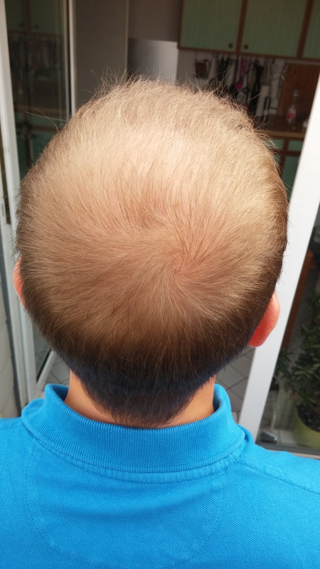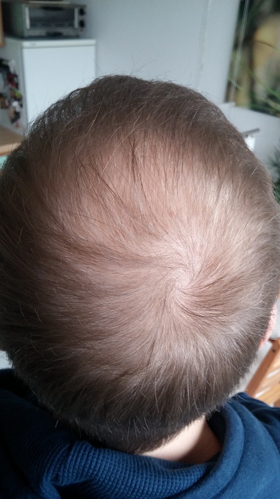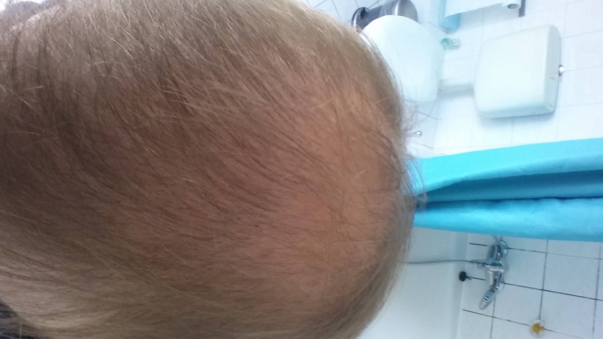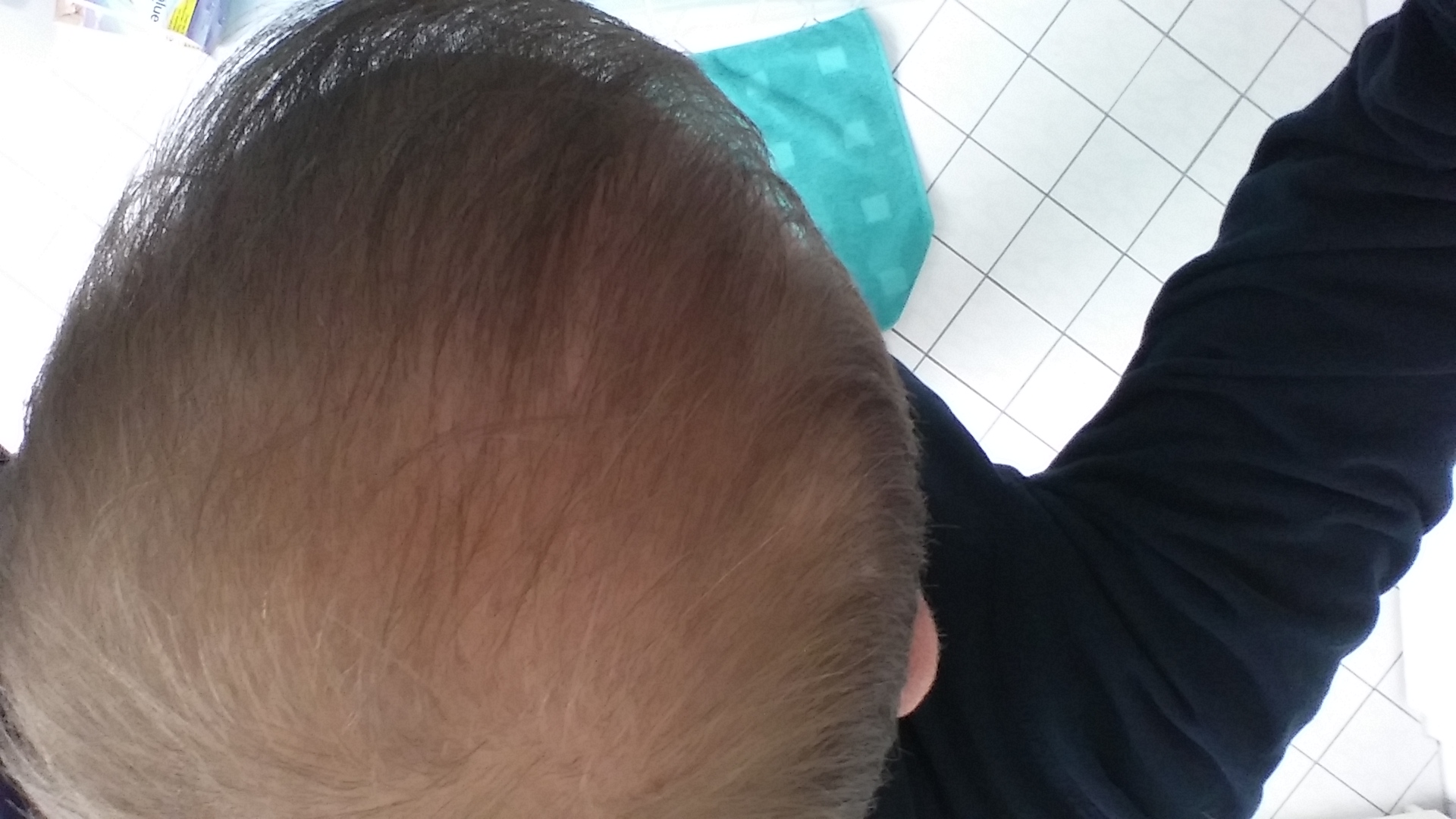 anbei mal ein Update nach einem halben Jahr. Bis jetzt bin ich recht zufrieden, allerdings macht mit der Hinterkopf Sorgen, der recht licht im Gegensatz zum Rest ist. Insgesamt habe ich mir eine Dicke der Haarpracht wie an den Seiten gewünscht. Davon bin ich aber noch weit entfernt.