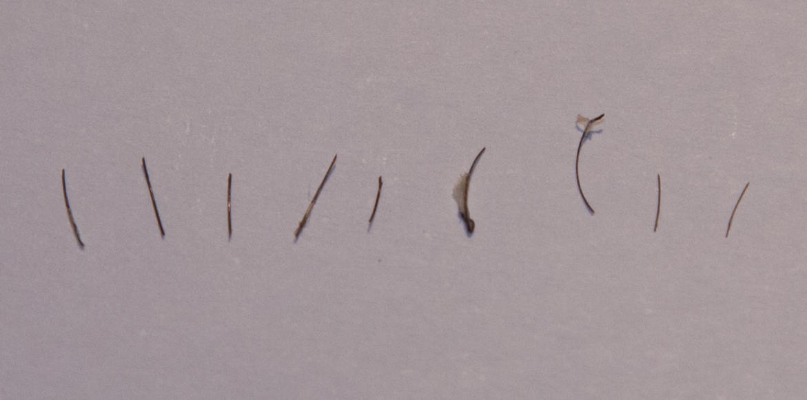 Es scheint so, als wenn von denen (Siehe Foto) nur 1 Haar mit Wurzel (Oder Graft, kenne den Unterschied nicht..) ausgefallen ist, an den restlichen kann ich keine Wurzel erkennen?!