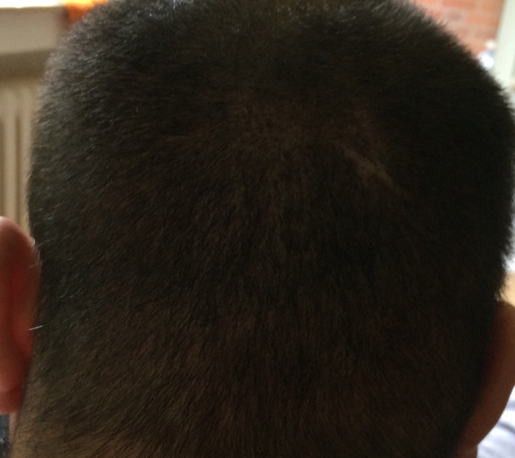 Nach 4 Wochen kannst Du zum Friseur bzw. die Haare abrasieren.