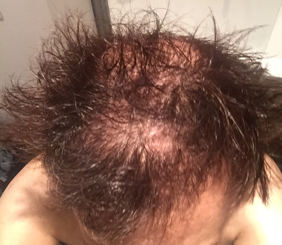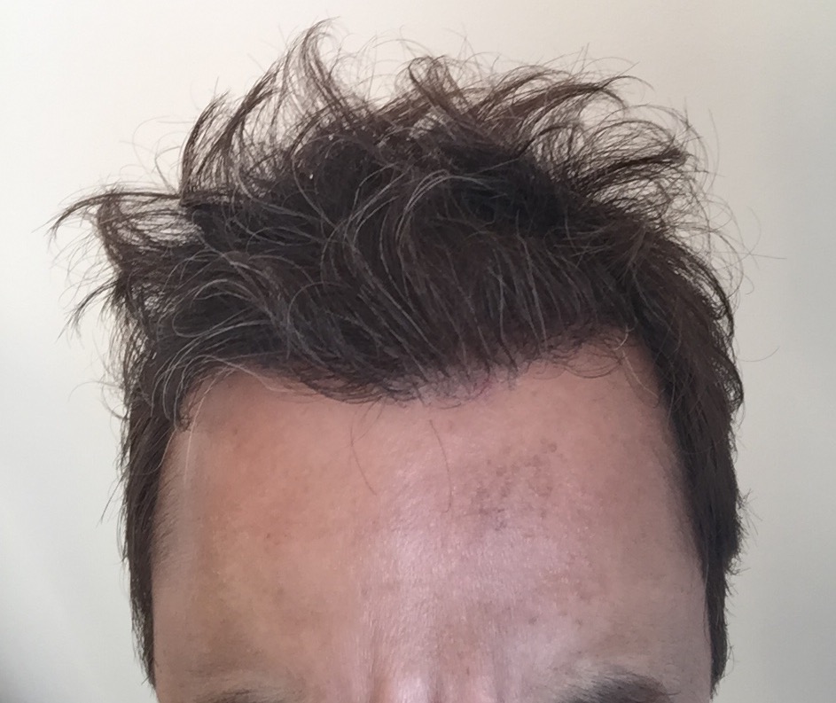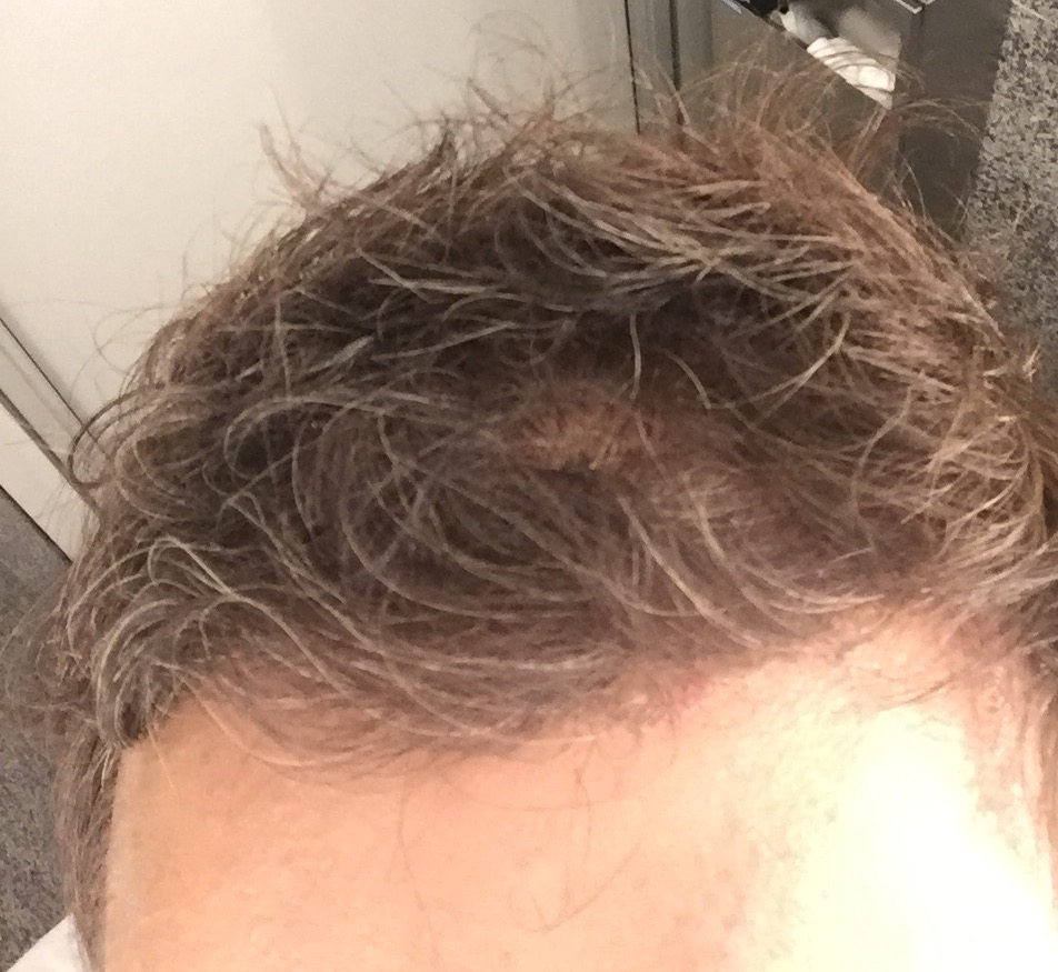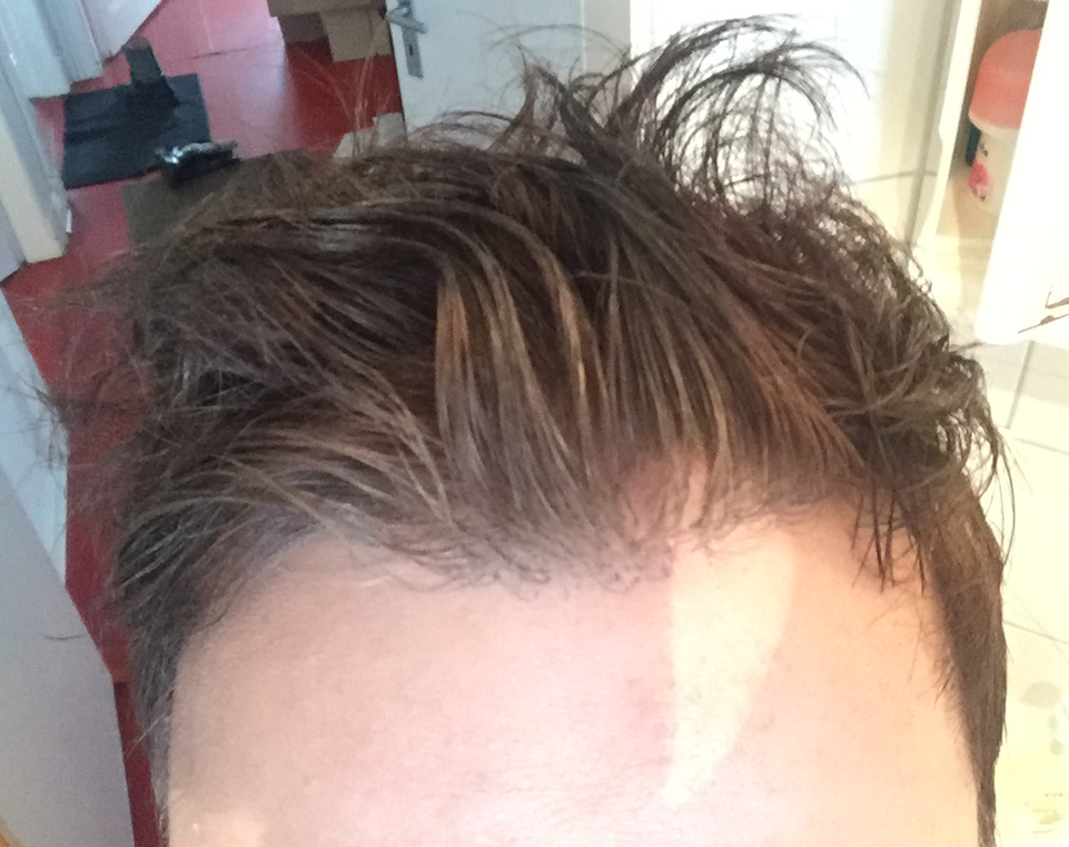 Genau an der Stelle, wo es noch kahl aussah, wachsen nun Haare, zwar noch nicht überall, aber trotzdem bin ich voller Hoffnung, dass das Ergebnis noch etwas besser wird.