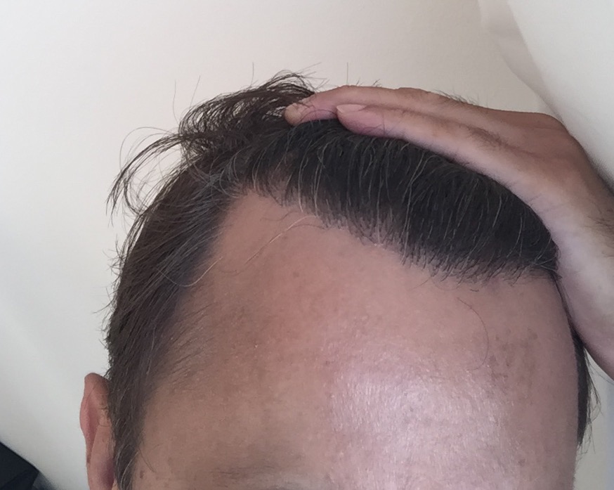 Ich finde persönlich, dass die Haarlinie ziemlich gut geworden ist. Die Geheimratsecken muss ich nochmal nachkorrigieren lassen in einer zweiten OP.