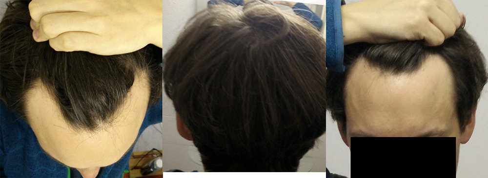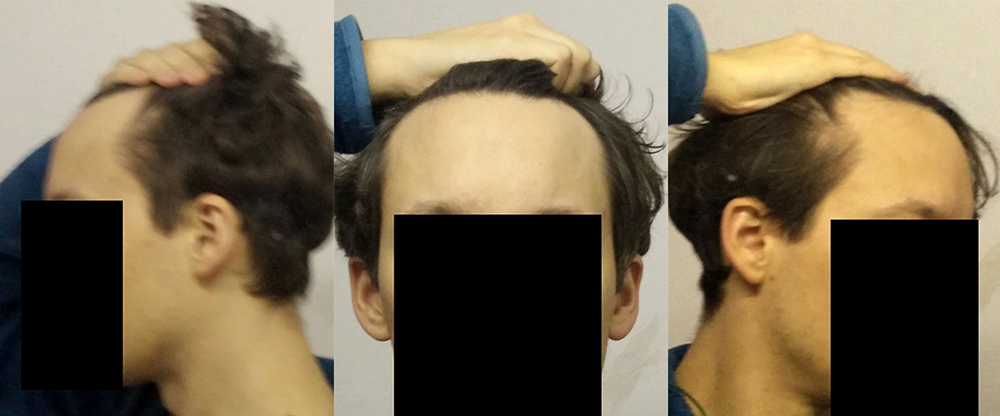 Ich bin männlich, 36 Jahre. Den beginnenden Haarausfall in Form von Geheimratsecken habe ich mit 27-29 Jahren bemerkt. Zuerst habe ich Minoxidil genommen, kein Effekt. Seit 5 Jahren nehme ich nun Finasterid. Und es schien zunächst verlangsamend zu wirken.