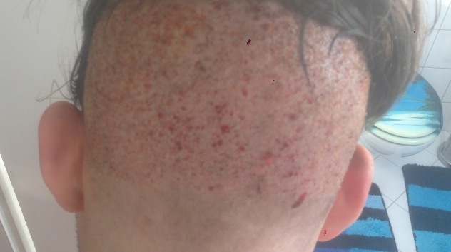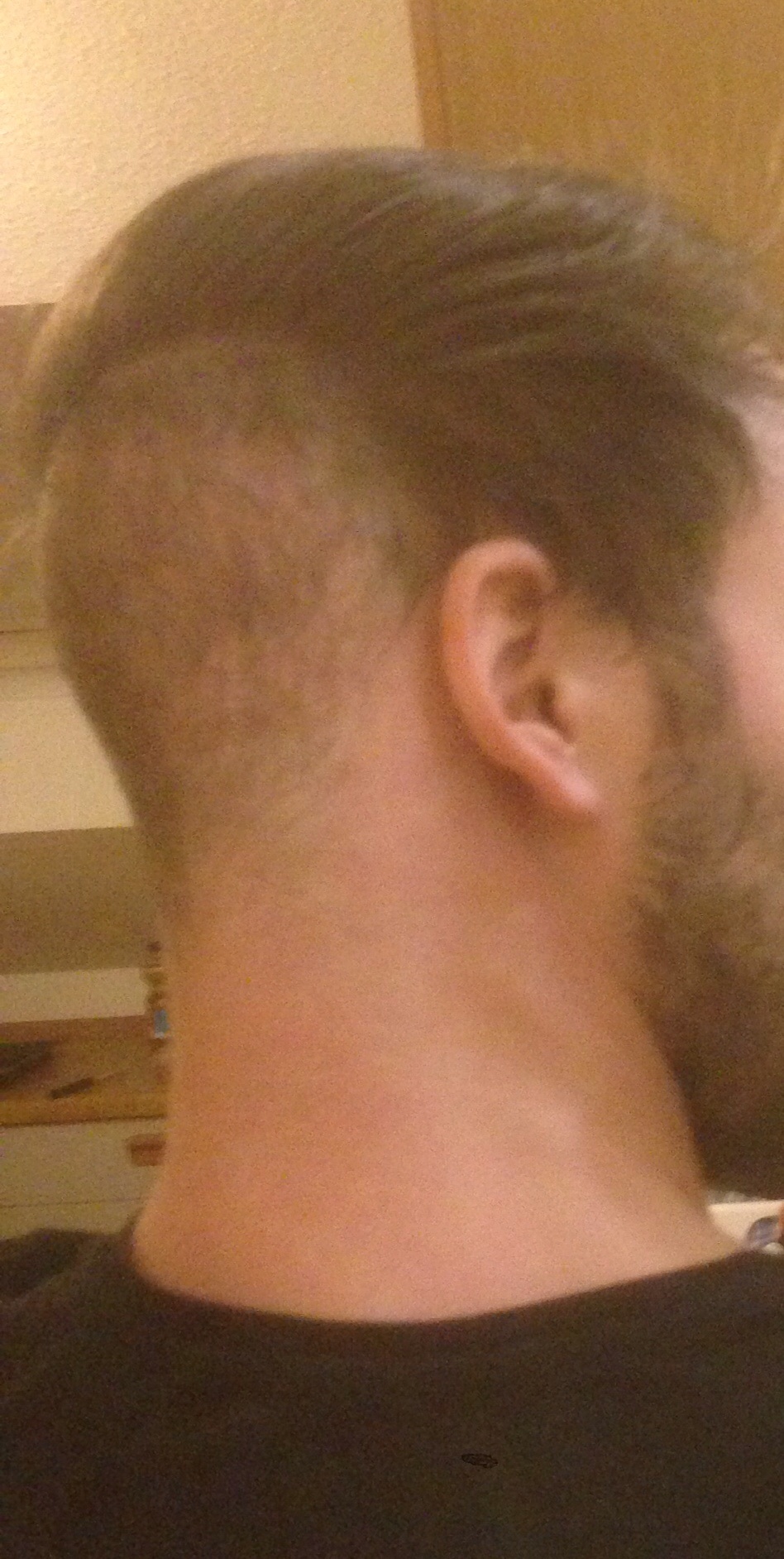 Bin zwar kein Experte, denke aber es sieht gut aus. Ist kaum rot, Haare schon fleißig wieder da. Mittlerweile macht meine Frisur schon fast den Eindruck als wäre sie so gewollt rennen ja einige so rum. Seiten müsste ich halt noch kürzen.....vllt nächste Woche mal Friseur. Ich weiß, wenn dann nur an den alten übrig geblieben haaren schneiden lassen oder?
