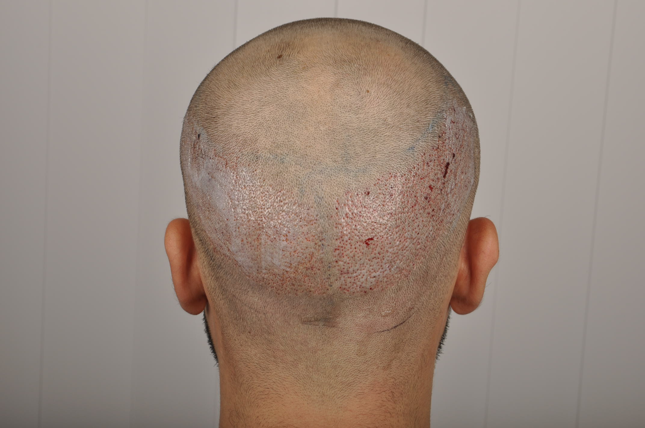 so wurde mir also am 11. oktober 1100 grafts gesetzt. die operation ist schmerzlos, jedoch ist die örtliche betäubung schmerzhaft. also ich empfand sie so. zuerst wurden die gratfs rausgnommen. da am ersten tag die singlegrafts gesetzt werden und da genaustens entnommen werden muss, dauerte dies fast 3 std. nach einer mittagspause inkl mittagessen und einer super versorgung wurde am nachmittag die front bearbeitet. zuerst wurden die löcher gemacht und dann die grafts gesetzt. ca. 17.30 uhr endete der erste tag.