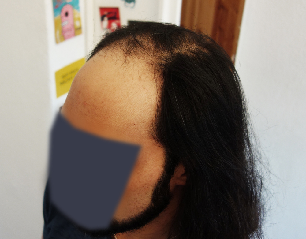 Ach ja, hier mal ein Update nach gut einem Monat. Wie zu erwarten sind einige der Haare (schätze 60-70%) ausgefallen. Ansonsten alles super: haut fühlt sich gut an und jetzt heisst es vorne nur noch warten bis was wächst ; )