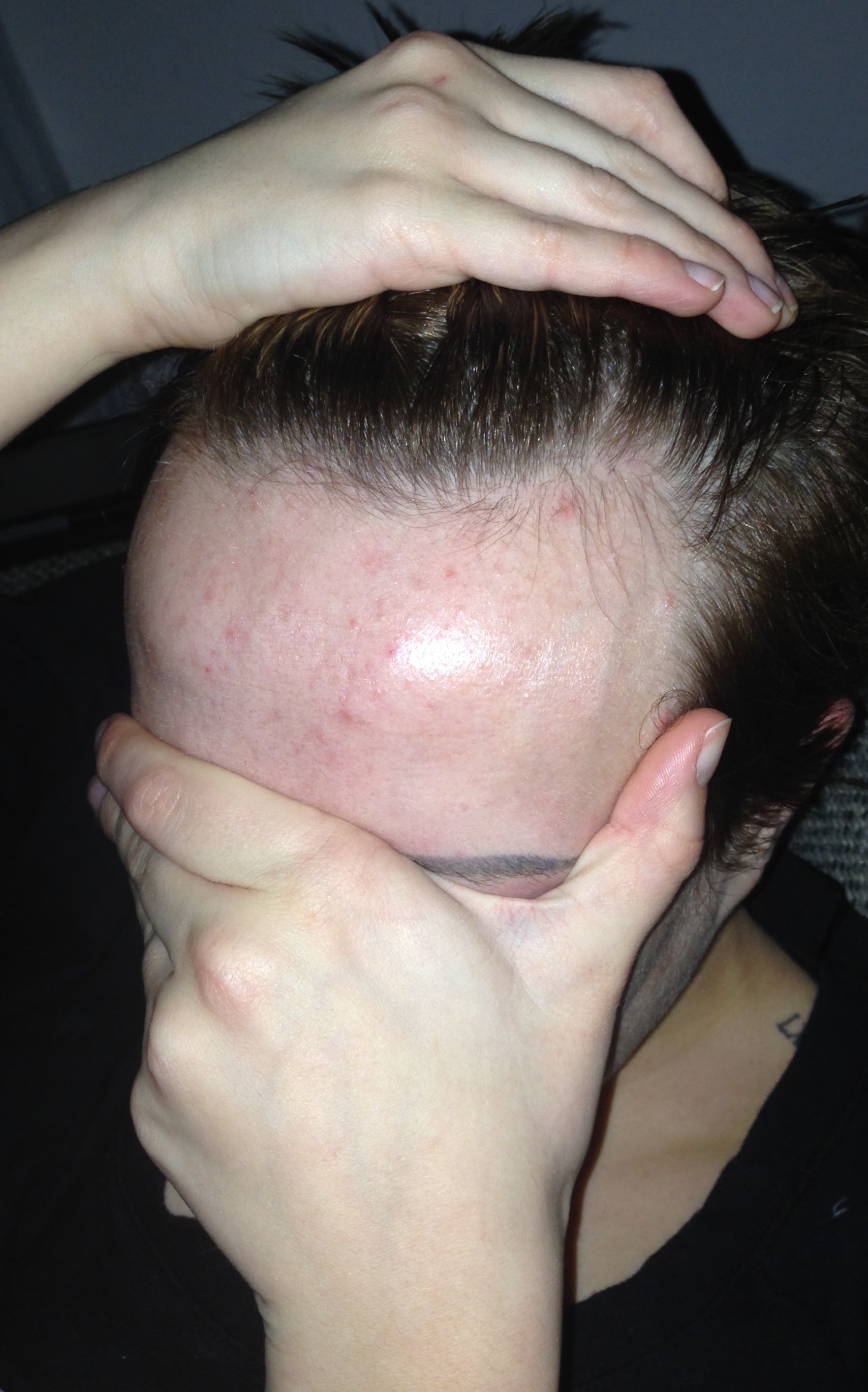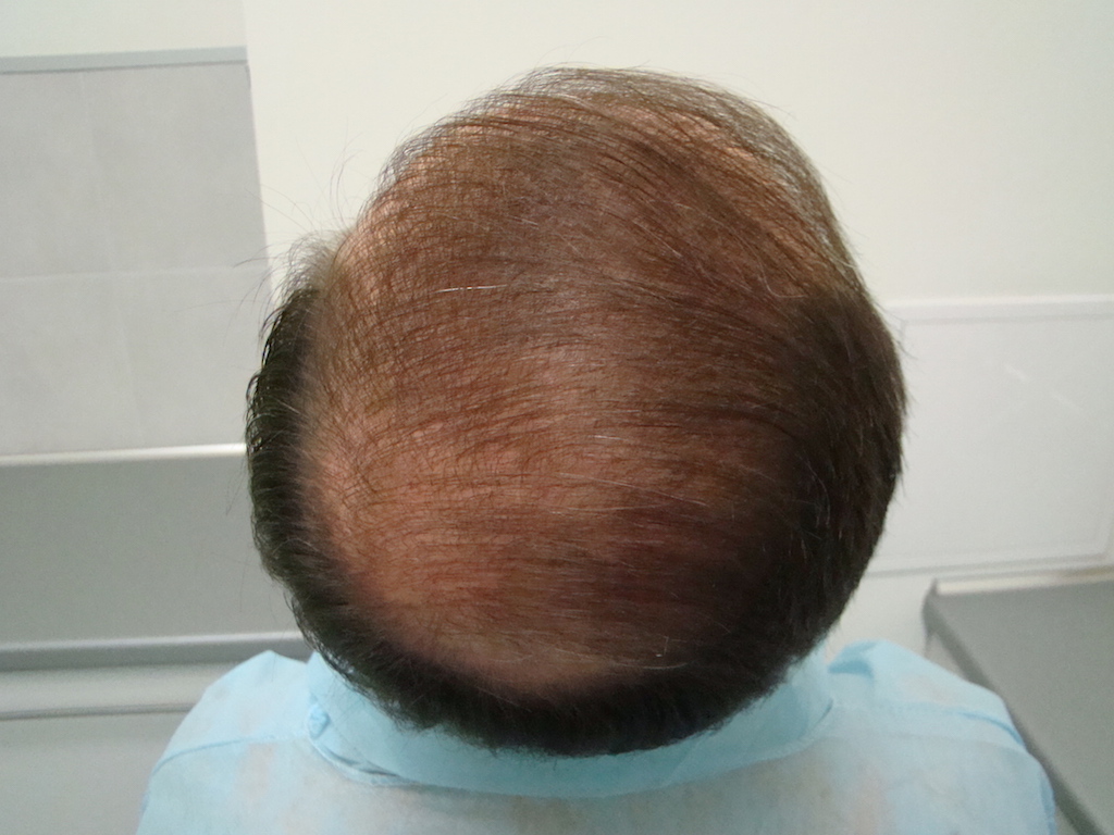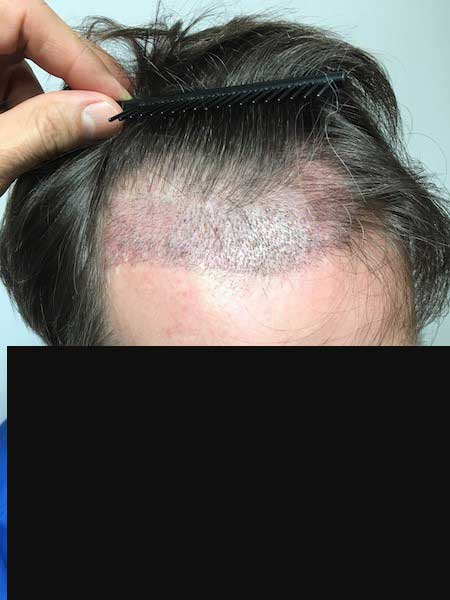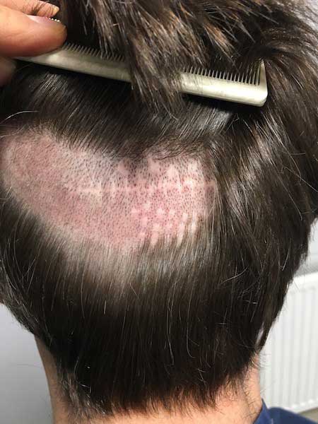 man siehr die narben nach entnahme von haartragenden kopfarealen vor vielen jahren mittels punch technik und dann ein aar jahre später mit der fut. die narben wurden von dr saifi beseiigt und trichophytisch verschlossen.