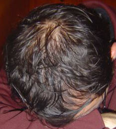 Hier ein Bild von oben, jedoch hatte ich da auch sehr viel Gel drauf drum sieht glaub ich die Tonsur nicht so gut aus, weil die normalerweise nicht so schlimm aussieht.