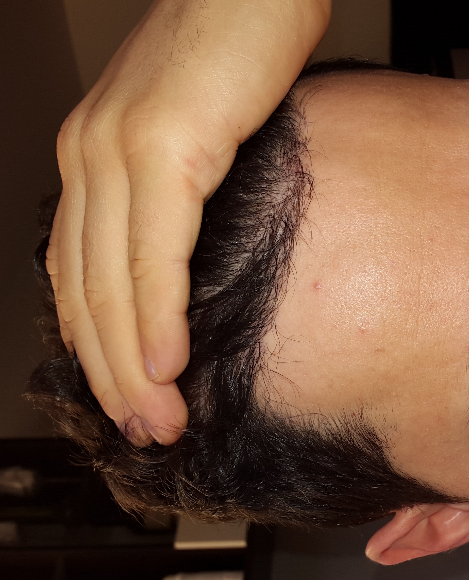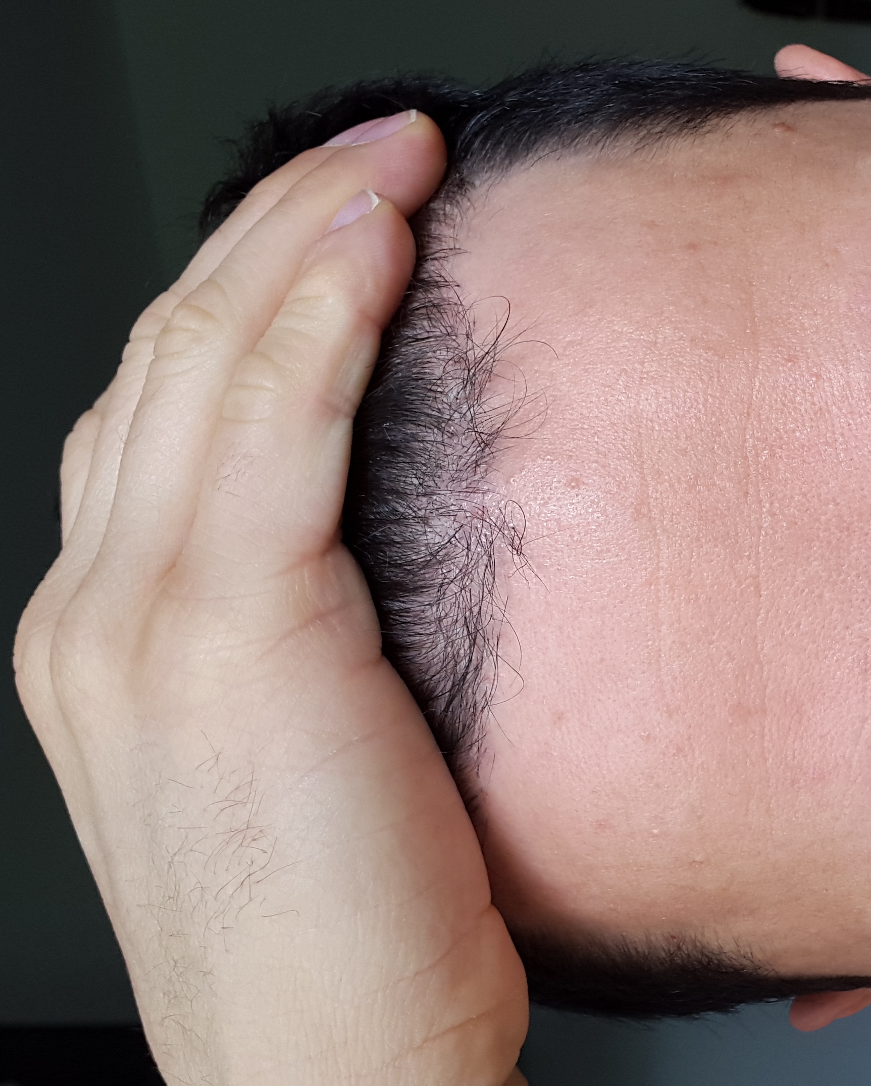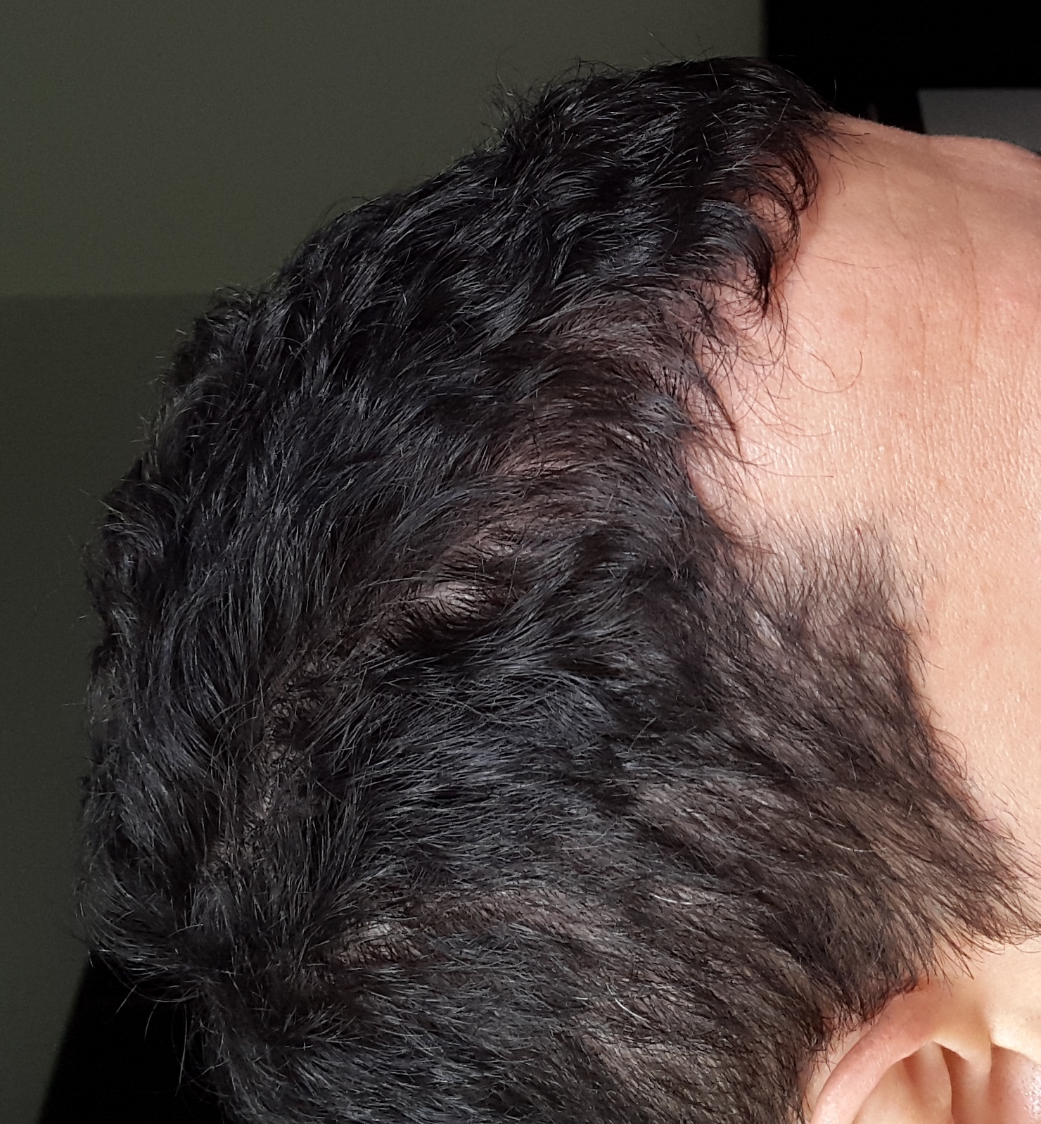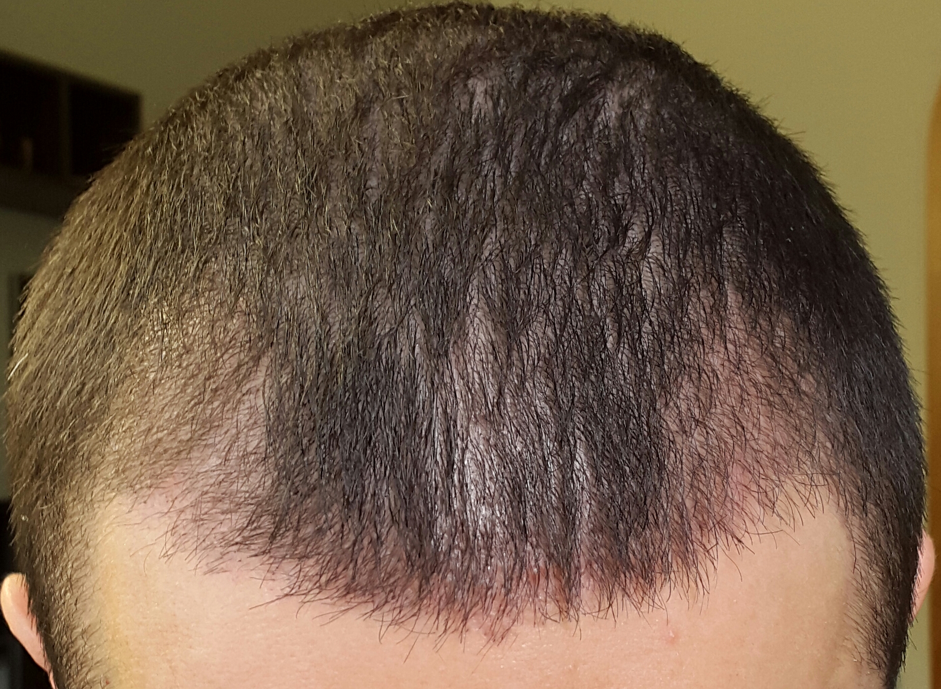 Kannst du vielleicht Bilder mit hochgekämmten Haaren machen, damit man die transplantierte Fläche besser sehen kann?