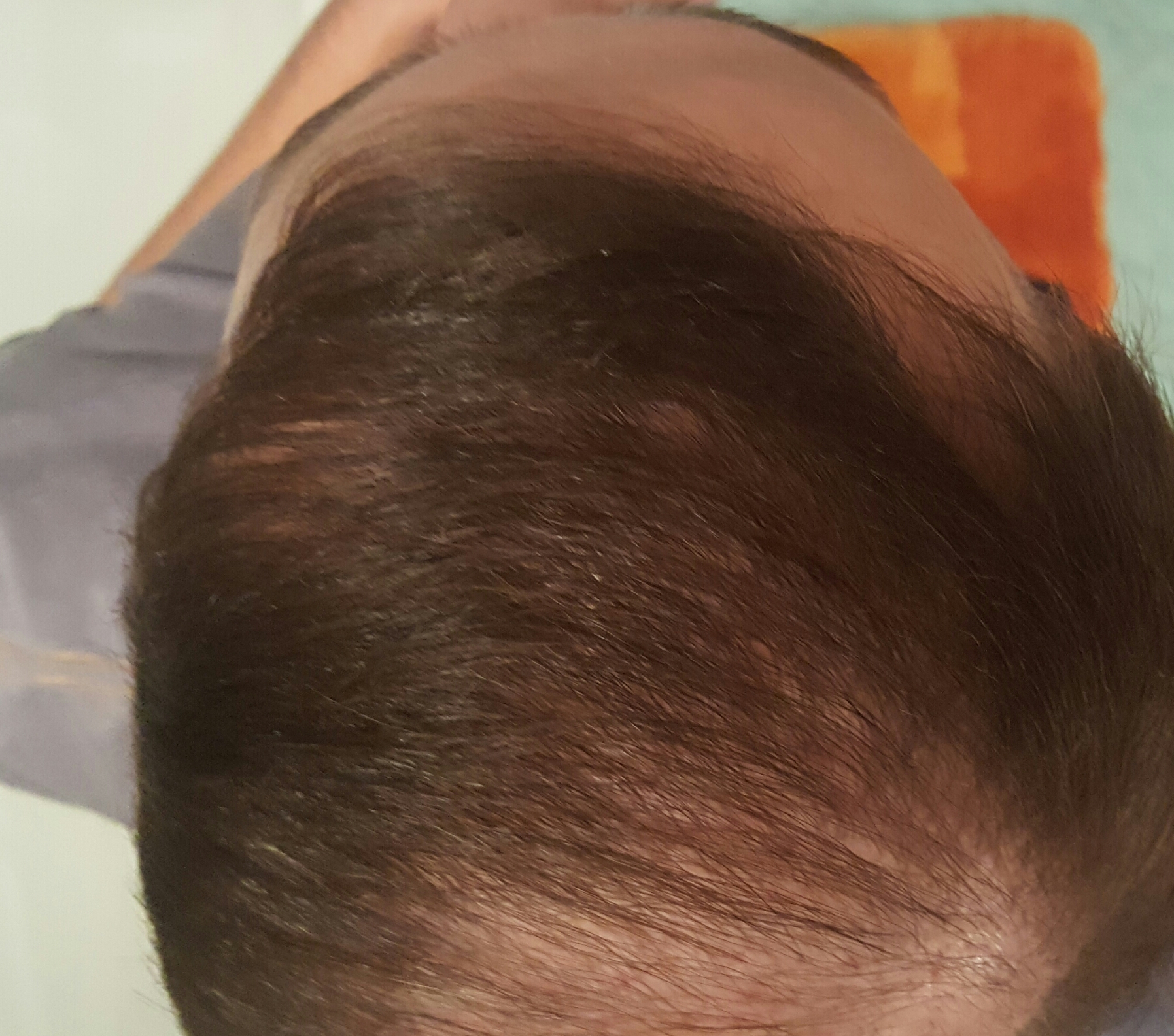 Komischerweise kann ich eher hinten auf der Tonsur, wo Dr. Feriduni eine Low Density gesetzt hat, hin und wieder Pickel bzw. eigentlich nur Rötungen, beobachten.