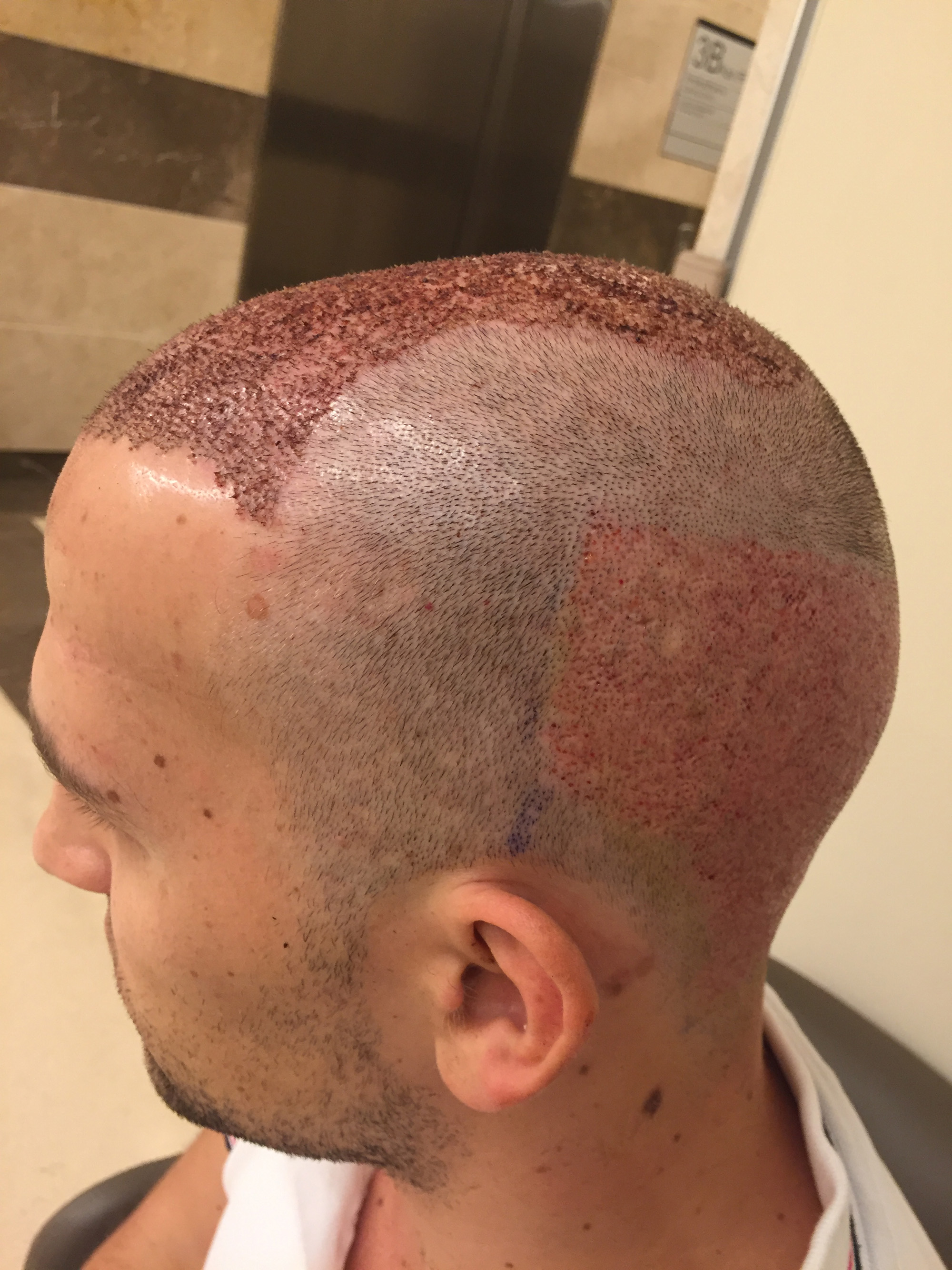 Auf den ersten Blick sieht der Donor ziemlich mitgenommen aus, aber es waren auch viele Grafts.