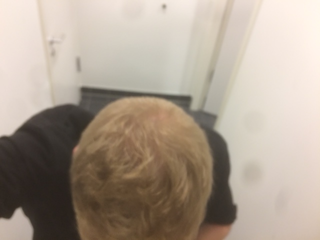 Sie ist dann mit Kamm durchgegangen hat es genau begutachtet und gemeint das die Tonsur unverändert bei mir ist.