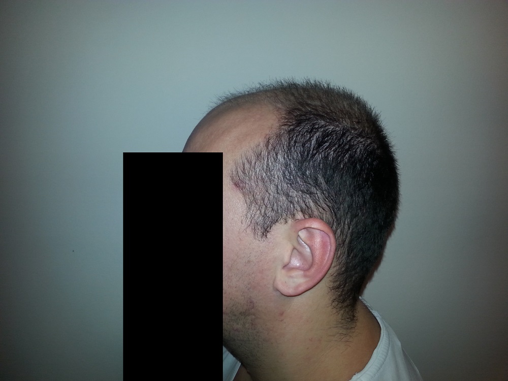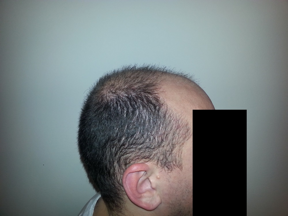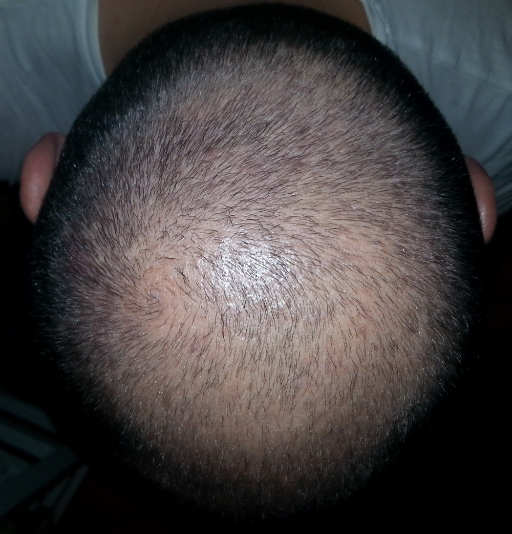 Ich schätze meine Situation so ein, das ich genug Spenderhaare habe, seitlich oben und hinten unten habe ich ziemlich dichtes "Fell".
