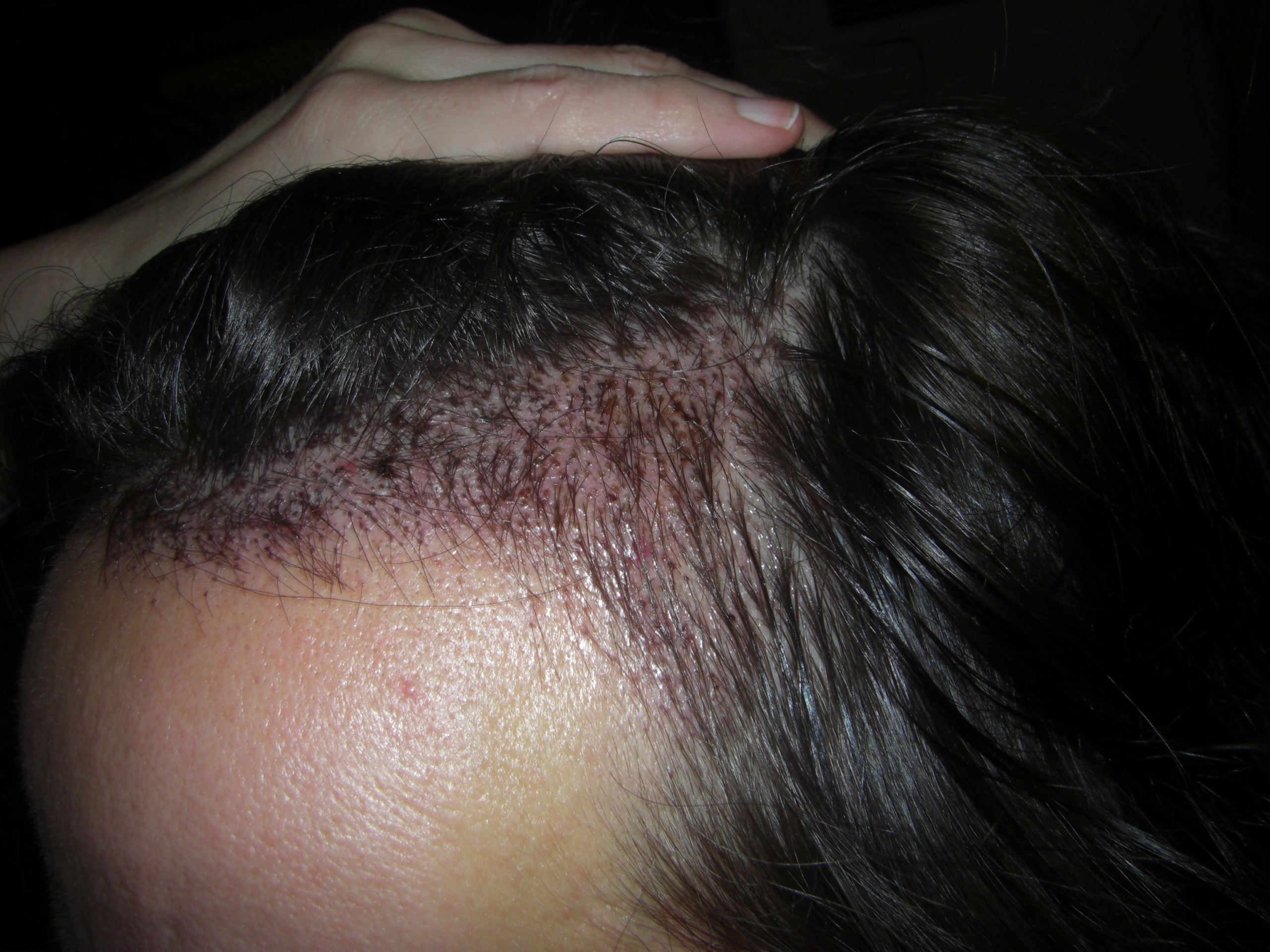 Dann geht das Jucken los. Die Haut schuppt sich und die Krüstchen fallen ab. Das ist nervig, denn die eingesetzten Härchen verabschieden sich fast alle. Es wird ja im Forum beschrieben, doch es ist trotzdem blöd, wenn du in den Spiegel schaust und die transplantierten Stellen sind fast kahl. Es sieht schlimmer aus als vor der HT. Da waren wenigstens ein paar Flimmerhärchen, die allerdings weg rasiert wurden. Ich hatte große Probleme die kahlen Stellen zu kaschieren... (es dauerte fast 6 Wochen, bis die ersten Stoppeln wuchsen...)