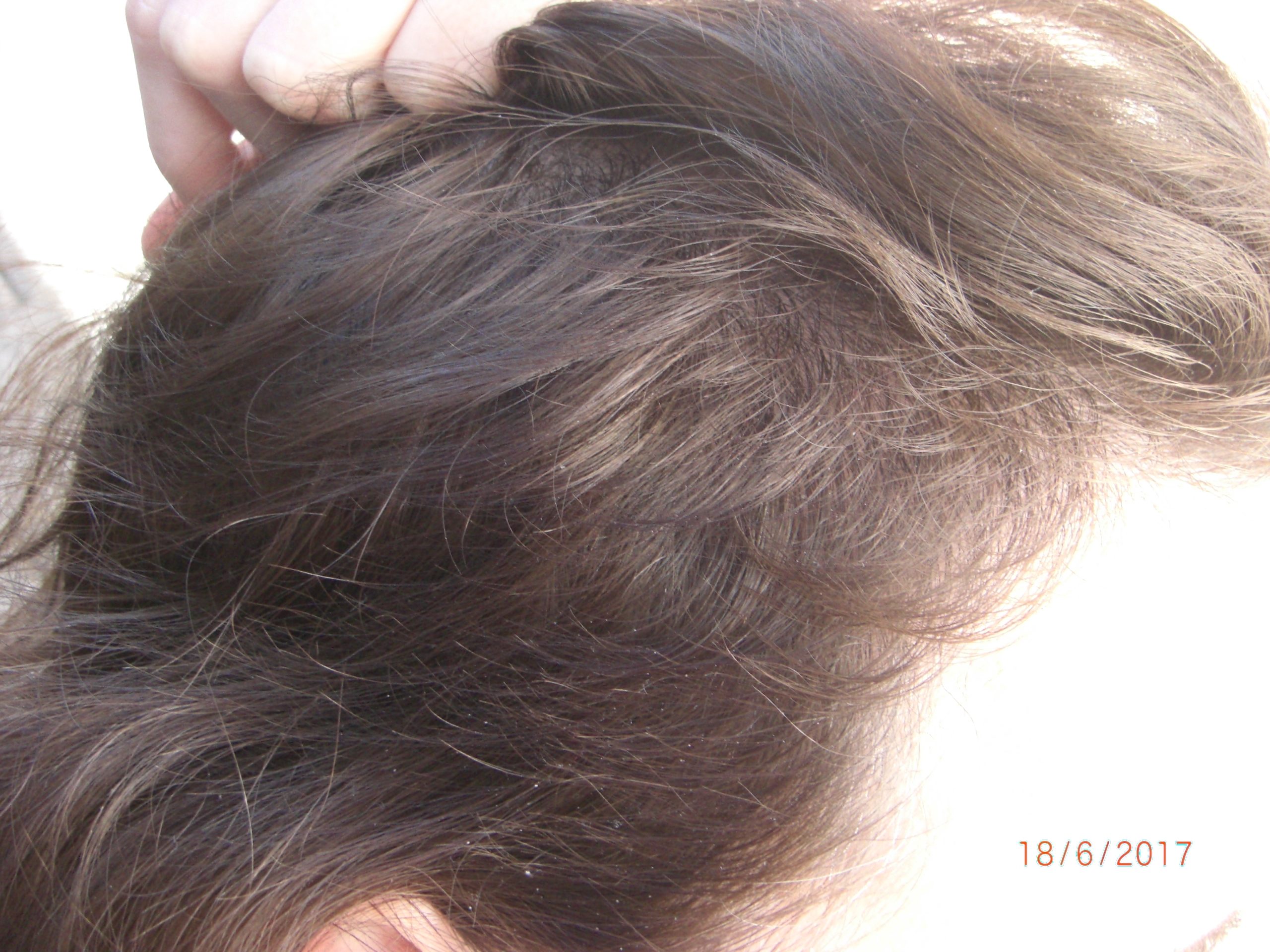Juni 2017 - Immer mal wieder hatte ich diese Schuppenbildung, da die Kopfhaut sehr trocken war. Durch die Sommerzeit vielleicht....