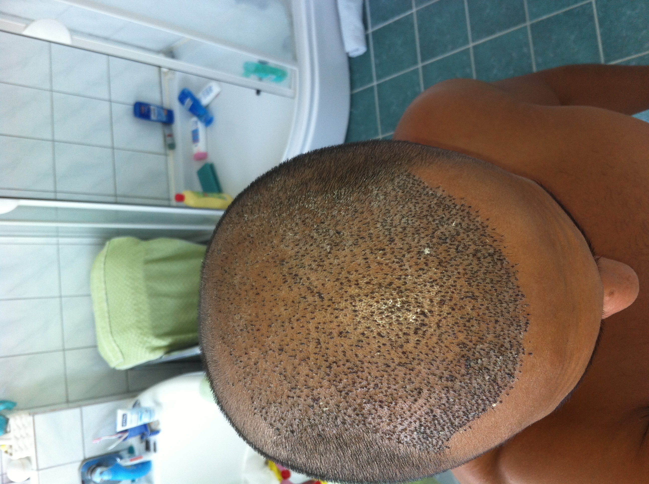 Fast alle transplantierten Haare der zweiten OP sind nun ausgefallen.