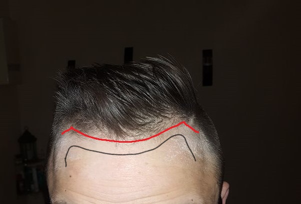Ein Da Vinci ist es nicht geworden aber wenn du hier an der roten Linie eine "dichte" Linie setzten lässt bist du auch in vielen Jahren ein glücklicher und natürlich aussehender Mann der die in der Öffentlichkeit mit einer Top Matte präsentieren kann