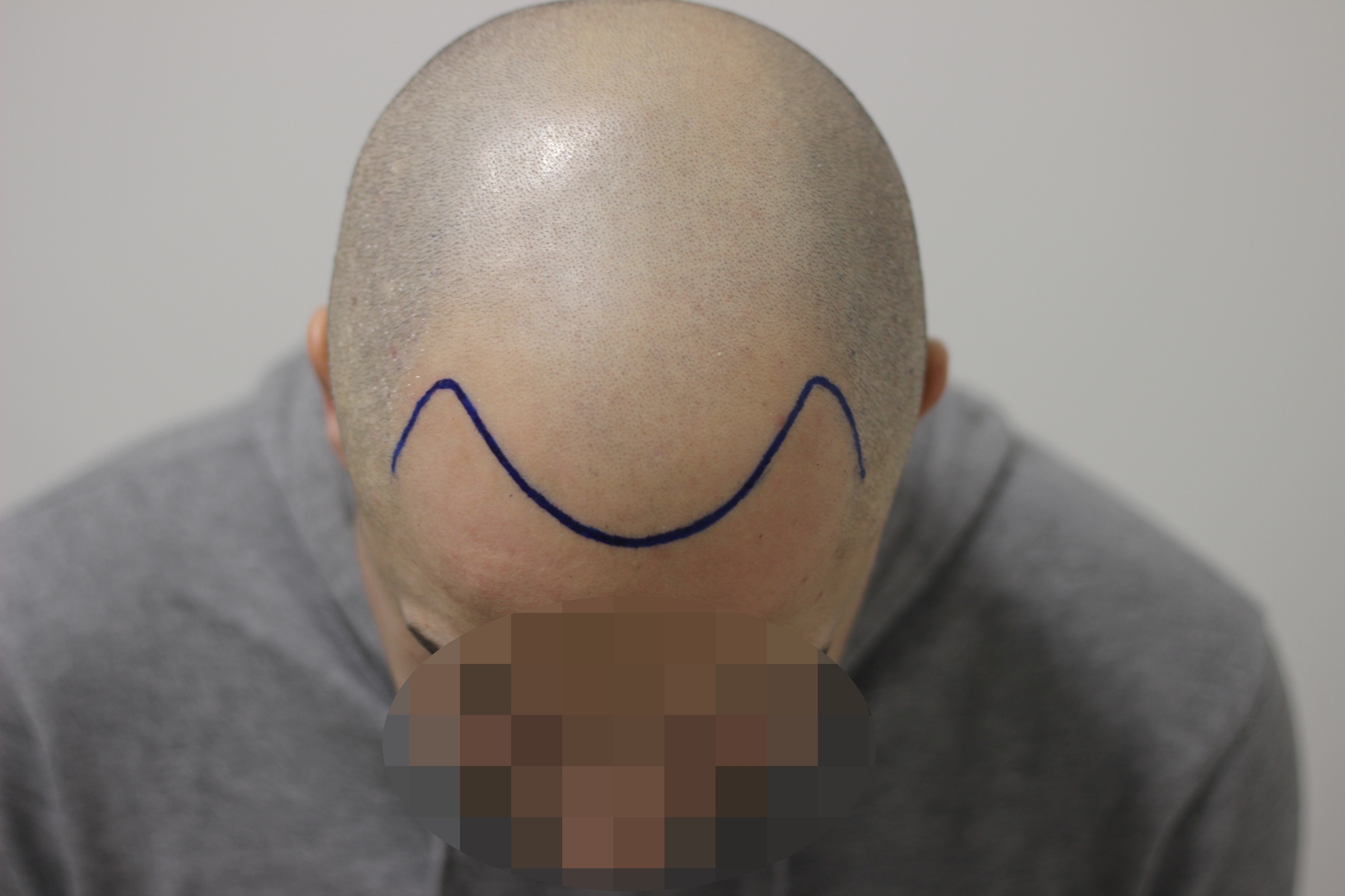 21.12 Nachmittag 17 Uhr -> Mein Cousin war fertig und meine Haare wurden abrasiert. Danach wurde mit mir meine Haarlinie besprochen und eingezeichnet. Ich habe diese bewusst nicht zu tief setzen lassen, weil mir eine hohe Dichte in der Front sehr wichtig war und ich nicht wieder wie 25 aussehen wollte.