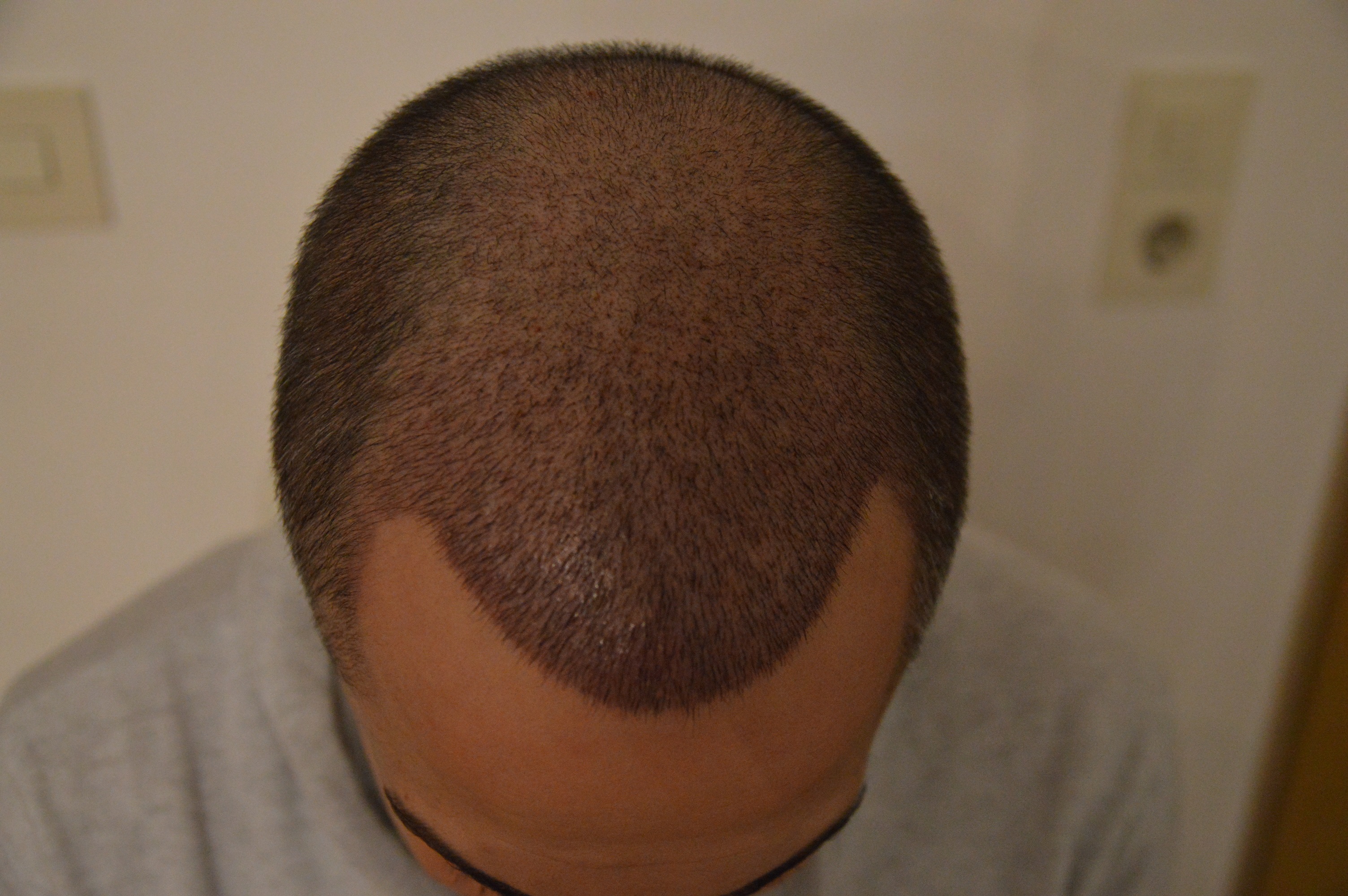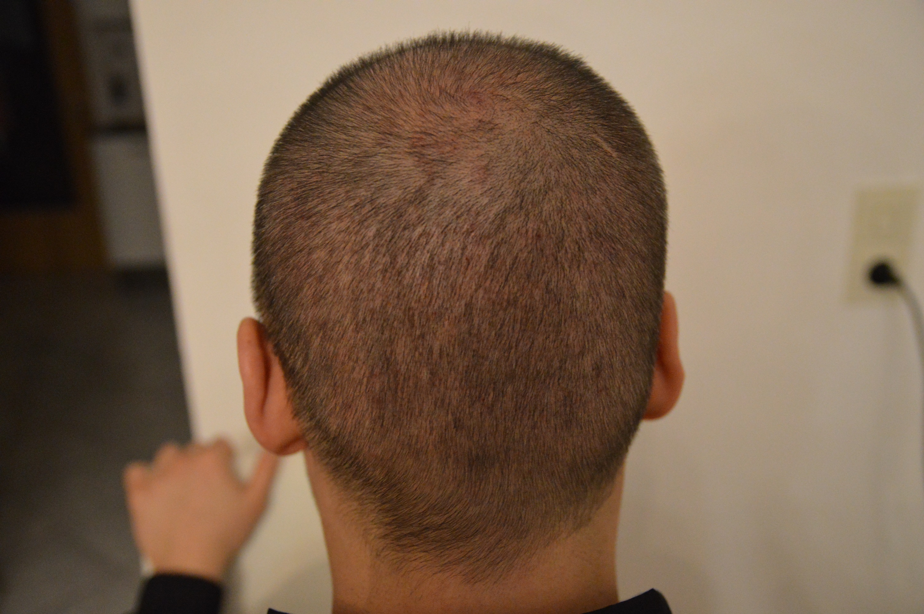 Mein Donor war schon nach einer Woche fit und 10 Tage später war garnix mehr zu sehen. Ich sehe absolut keinen Unterschied. Da die Seiten aktuell schneller wachsen als oben (shock loss alte Haare?) habe ich diese auf 3mm abrasiert(nur den Entnahmebereich Smile ).