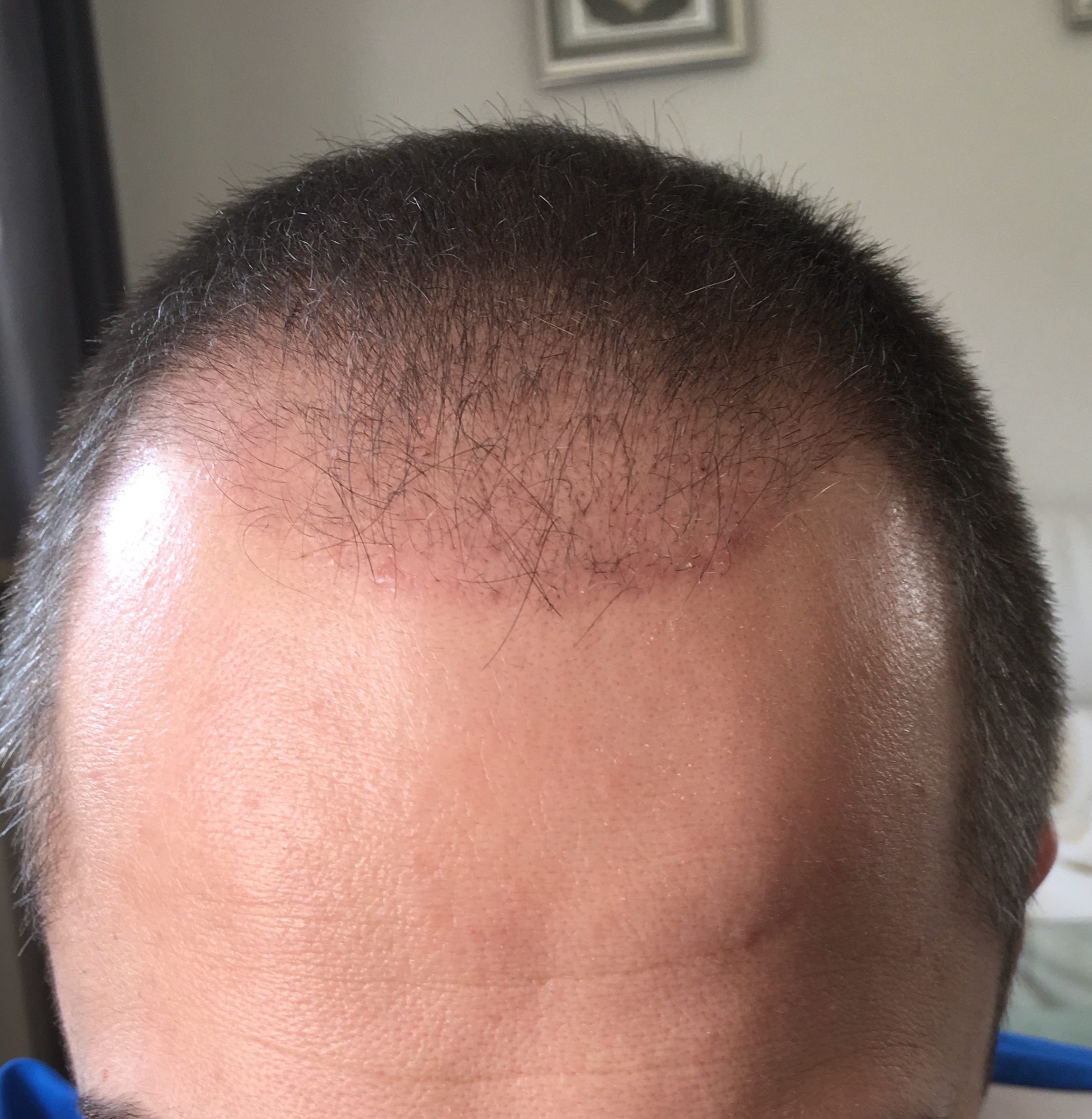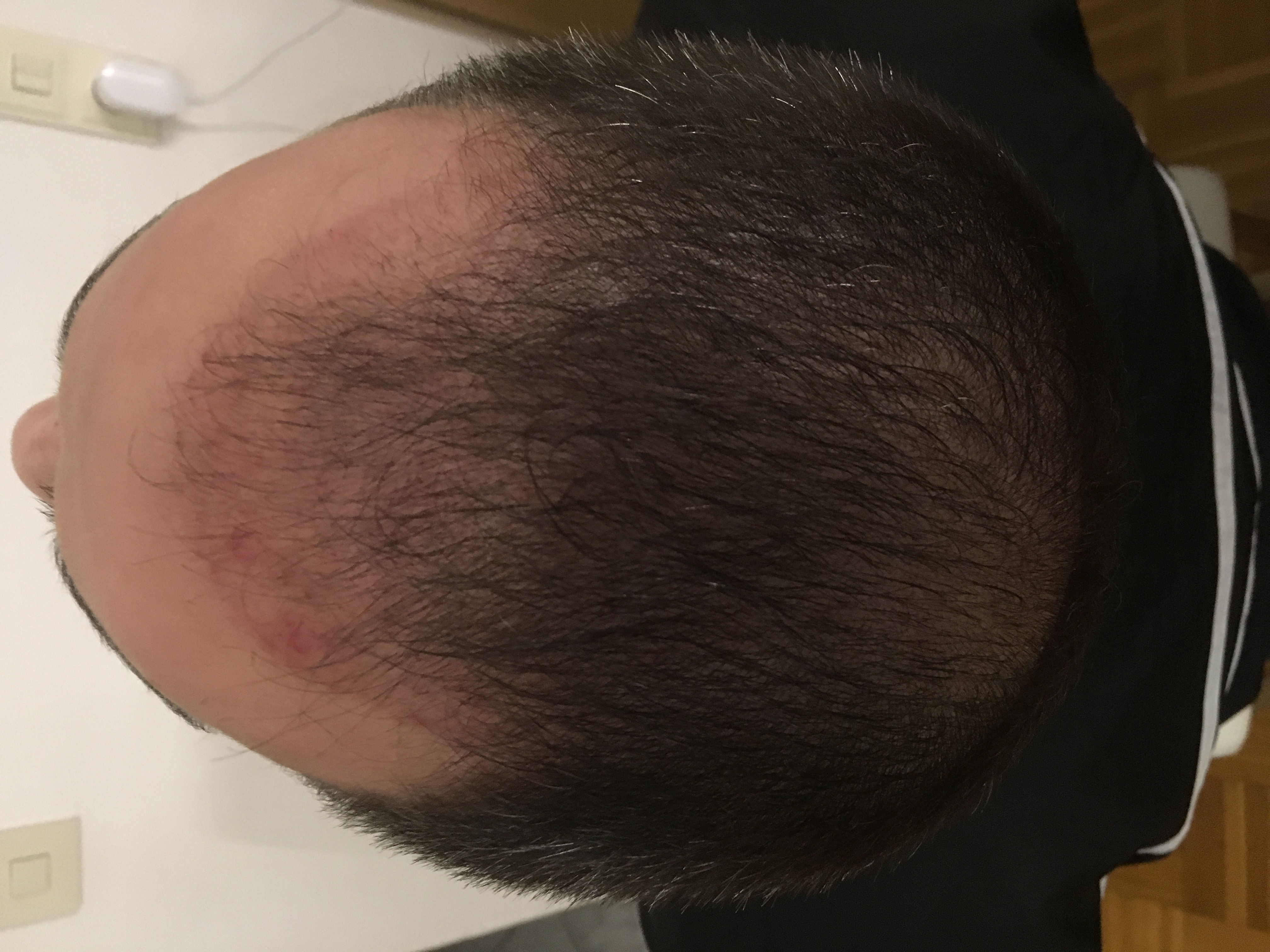 Eine Rötung im eingepflanzten Bereich ist noch vorhanden und hin wieder juckt es am Donor. Schmerzen und Schwellungen hatte ich zu keiner Zeit. Mir wurde auch dringslichst geraten den Kopf die ersten 2 Tage nach der OP so wenig wie möglich nach vorn zu beugen. Ich denke, dass mir deshalb auch ein Boxerkopf verschont geblieben ist.