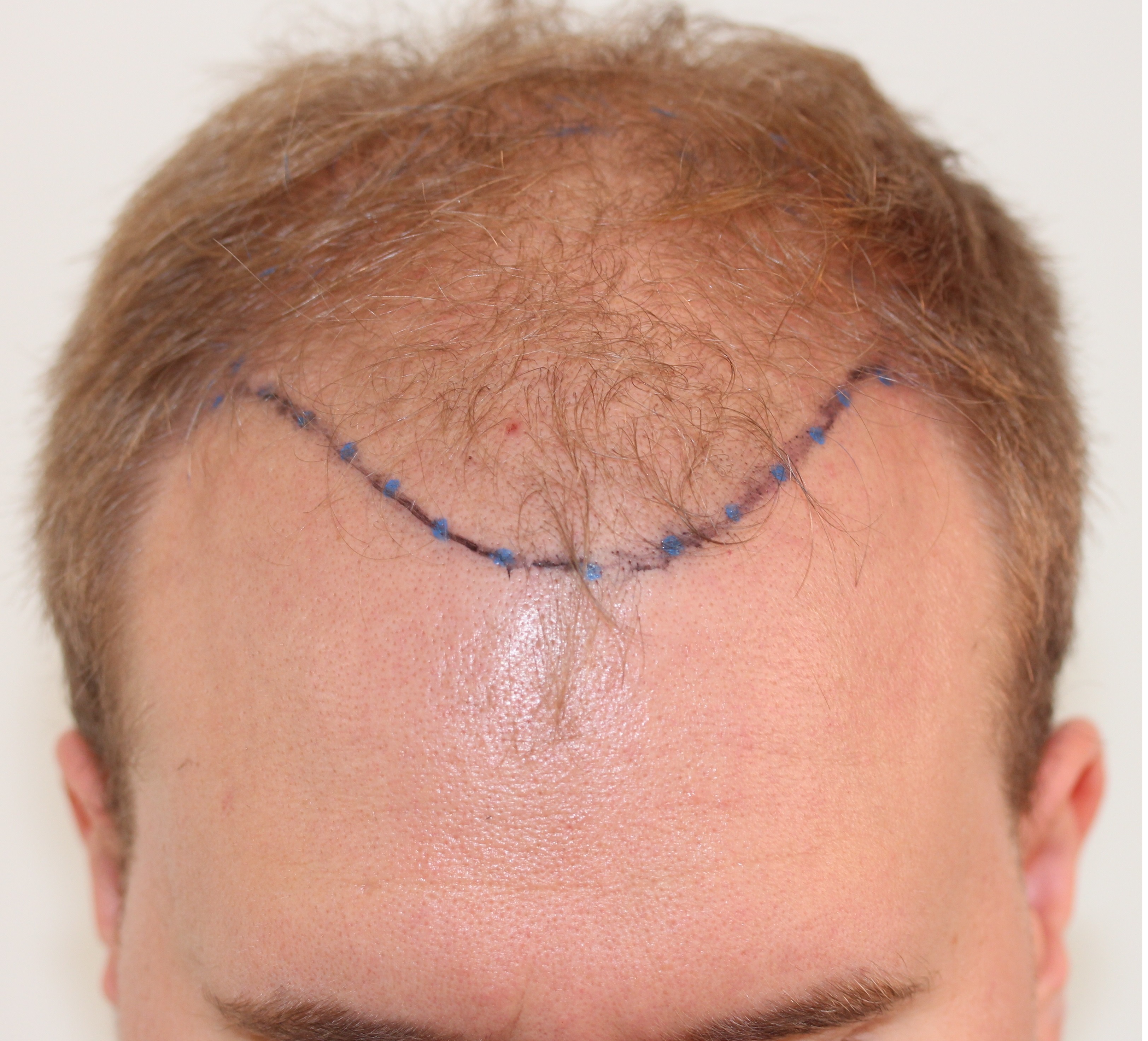 Hier noch ein Bild von oben vor der Operation und die Haarlinie die gezeichnet wurde