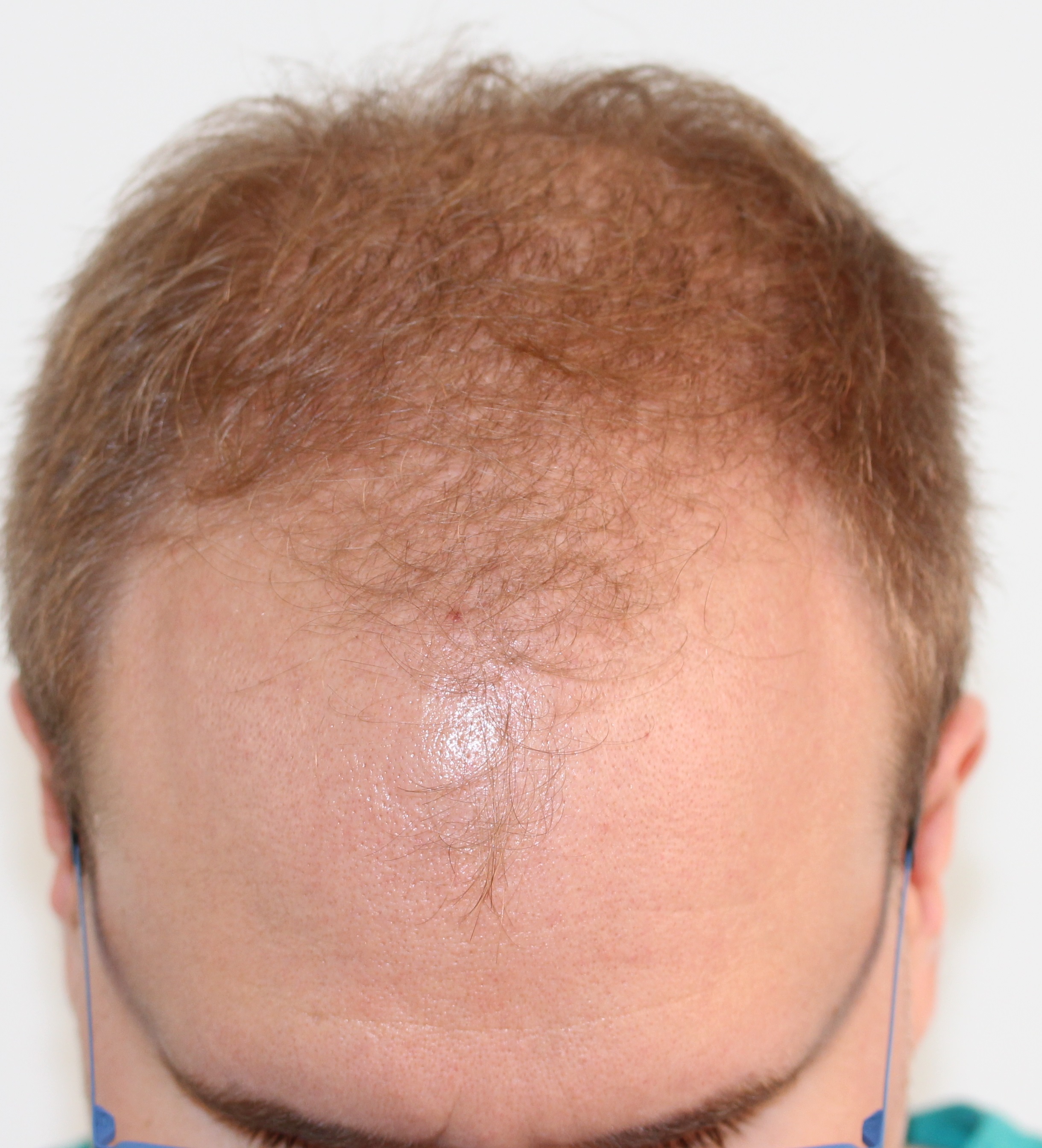 Aktuell befinde ich mich im 5 Monat nach der Transplantation und die Haare fangen langsam an zu wachsen.