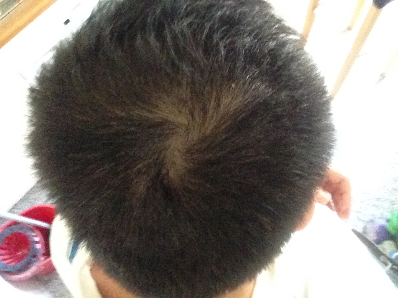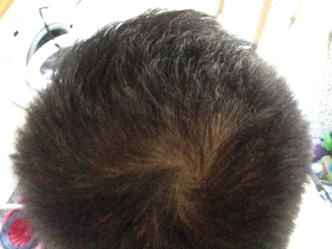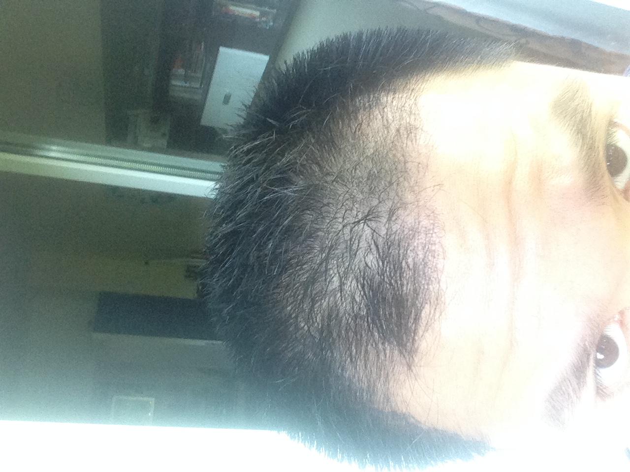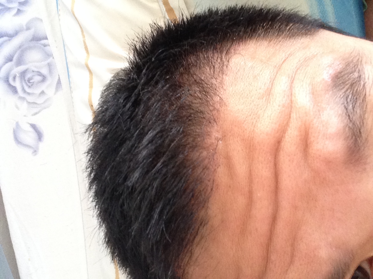 Das Haar wurde zusehends lichter, links (GEheimratsecke) hatte ich schon lichtes, schütteres Haar. Rechts war der Status am schlimmsten.