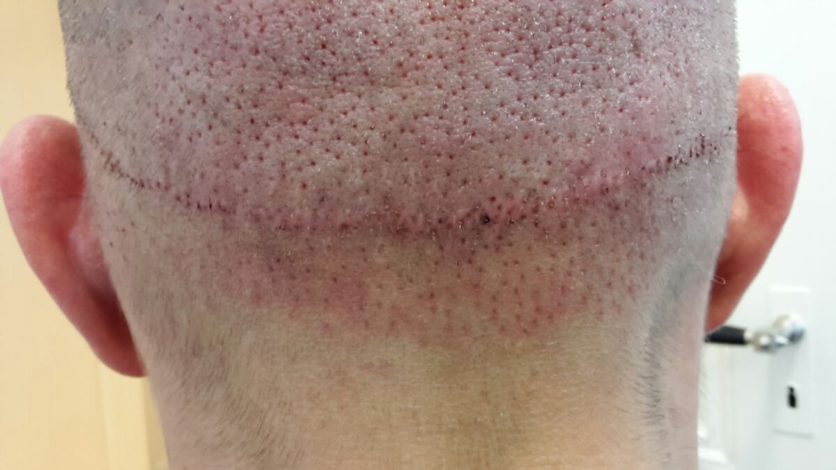Mit dabei auch noch Bilder von der alten FUT Narbe die mit 150 Grafts behandelt wurde.