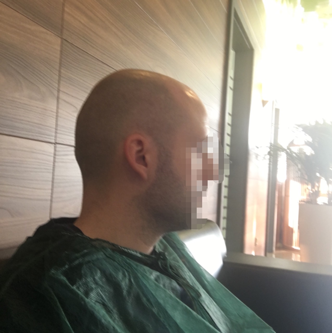 Das Liegen auf dem Bauch schien Anfangs kein Problem zu sein, allerdings war das Loch auf der Liege extrem klein, und vor allem die seitlichen Stellungen beim Entnehmen der Grafts schienen endlos lang zu sein und waren unbequem. Im Hintergrund lief Radio, so dass man durch die Nachrichten immer über die aktuelle Uhrzeit informiert war. Außerdem sangen die netten Damen die Lieder leise mit und sorgten somit für eine sehr lockere Atmosphäre. Mit der Ärztin redeten sie fast ununterbrochen und dazu auf Türkisch, somit wusste ich nie wirklich was Sache ist, aber am Tonfall konnte man zumindest erahnen, dass es nichts schlimmes ist. Es störte mich übrigens auch nicht. Nach rund 2 Stunden fragte man mich was ich denn gerne essen möchte, man würde für die Mittagspause beim Italiener bestellen. Nur eine halbe Stunde später, also ca um 11:30 Uhr, war die Entnahme abgeschlossen.