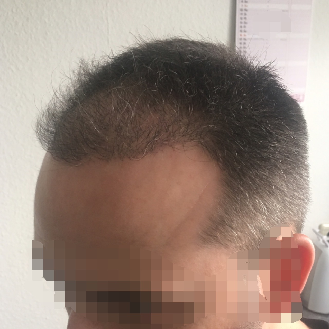 Ich bin wirklich mehr als zufrieden mit dem Ergebnis. Der Neuwuchs dürfte sicher abgeschlossen sein, aber gerade in den letzten Wochen merke ich, wie die transplantierten Haare dicker und natürlicher werden. Sie sind vom Gefühl her immer weniger vom restlichen Haar zu unterscheiden.