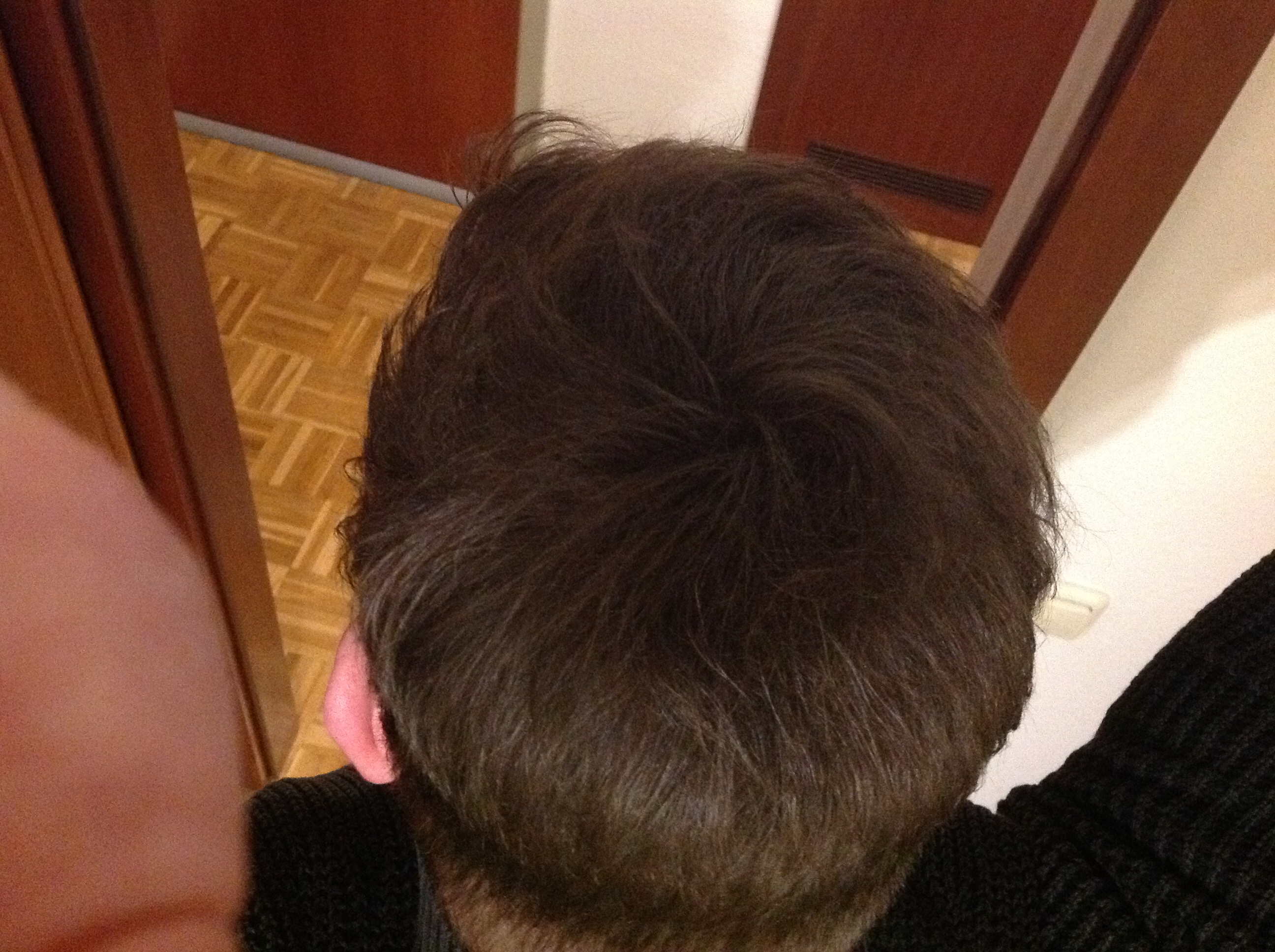 Ich habe seit ca. 5 Jahren lichter werdendes Haar am Hinterkopf. Bislang hatte ich es nicht so wahrgenommen bzw. verdrängt (man muss sich ja beim Friseurbesuch nicht jedes Mal die Frisur von hinten zeigen lassen Rolling Eyes). Nun wurde ich zum ersten Mal von Dritten angesprochen, dass ich hinten zunehmend "Federn lassen" würde.