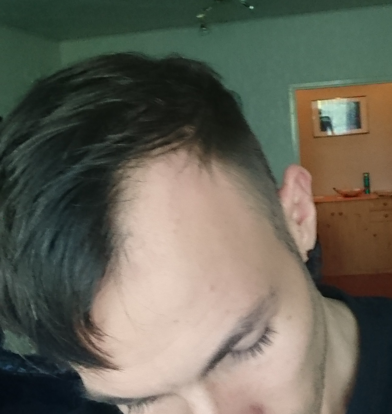 dann sieht man die besten Ver'nderungen , kann aber sagen das ich jetzt mitten in der Wachstumsschub Zeit bin , es geht gerade richtig ab auf meinen Kopf und es kommen immer mehr Haare und verdichten sich Very Happy