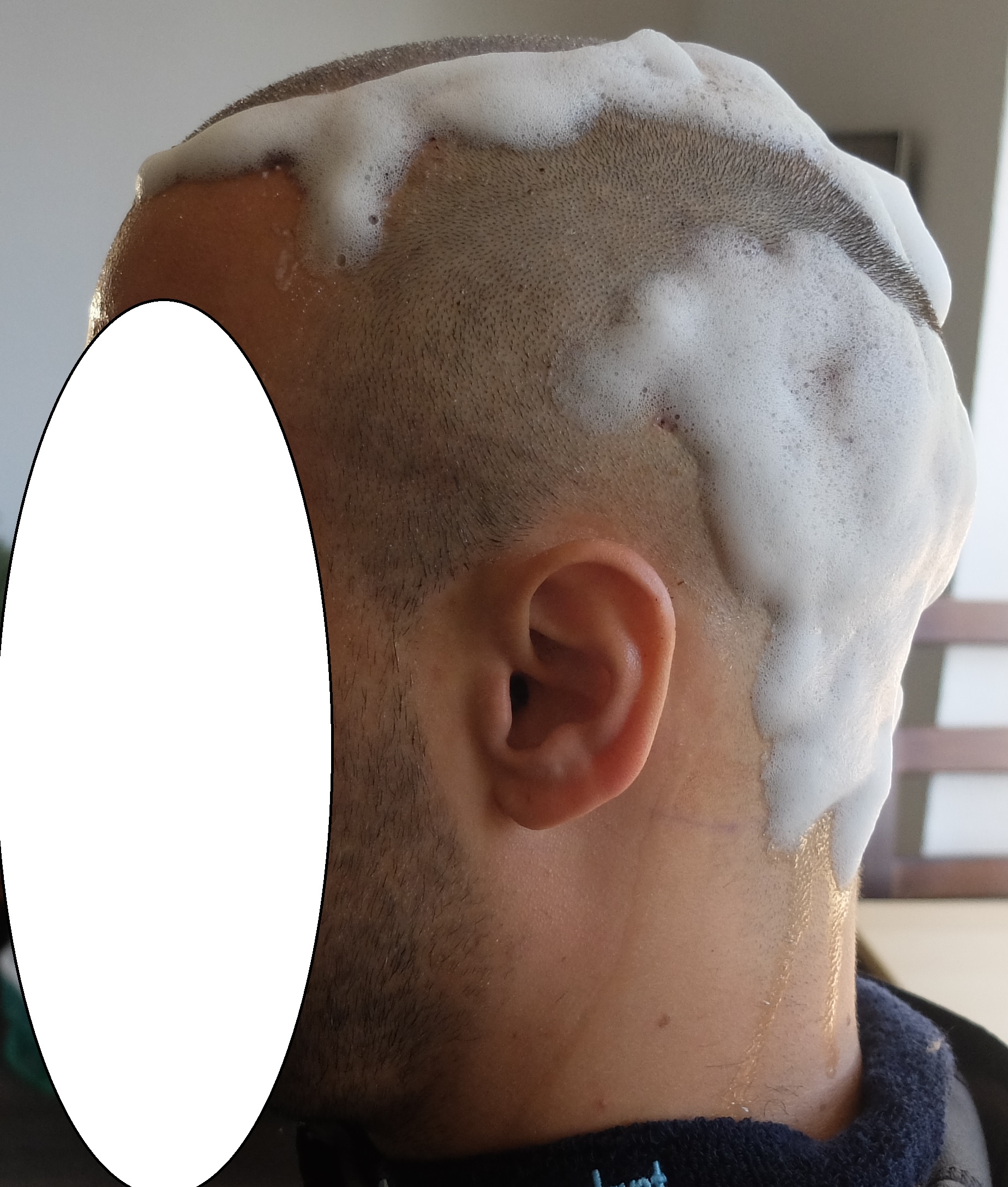 Aber der Heilungsverlauf sieht gut aus. Die Empfehlung, 2 Tage die Haare nicht zu waschen, habe ich auch noch nie gehört. Aber jede Klinik hat ihre eigenen Empfehlungen.