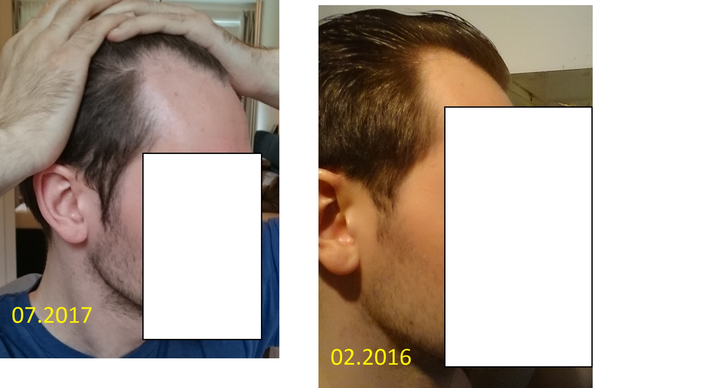Ich bin der Meinung, dass beim Vergleich der aktuellen Bilder und denen vor 18 Monaten ein kleiner Fortschritt des Haarausfalls zu sehen ist, welcher sich aber in Grenzen hält. Gerne würde ich aber noch mal eure Meinung hierzu hören. wie würdet ihr das Voranschreiten beurteilen?