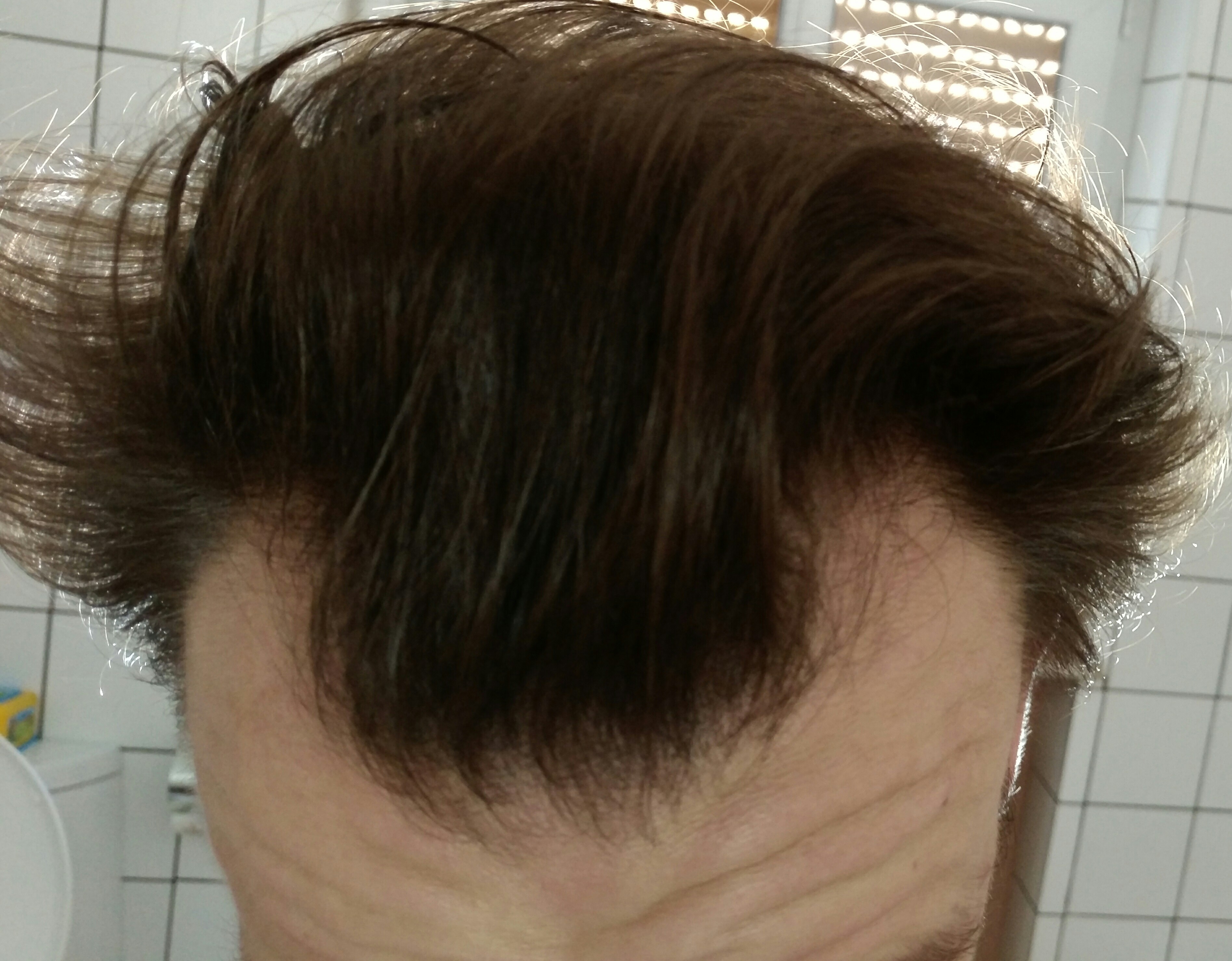 Seit 1, 2 Monaten wird der Zustand immer besser, vor allem die mittlere Front! Man sieht im Sonnenlicht, gerade im Autospiegel bei geöffnetem Schiebedach die Kopfhaut nicht mehr so durch.