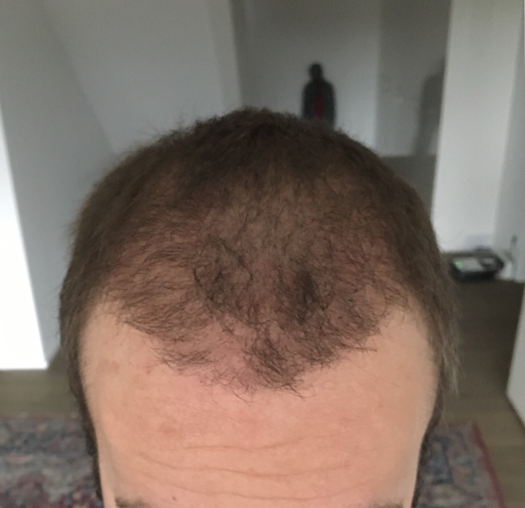 Zur Vorgeschichte: Bereits mit 18 Jahren hatte ich für mein damaliges Alter recht große Geheimratsecken, über die ich mich jetzt zwar nicht riesig gefreut habe, die mich aber auch nicht sonderlich störten. Bis 27 blieb - meinem Empfinden nach - der Status auch relativ gleich, bevor ich dann mehr und mehr bemerkte, dass sich der mittlere Haaransatz zu lichten begann. Bis zum heutigen Zeitpunkt (ich bin jetzt 32 Jahre alt) haben sich die Geheimratsecken weiter vergrößert und auch der mittlere Bereich hat sich weiter ausgedünnt, so dass ich in den letzten zwei Jahren die Haare immer mehr zur Seite geföhnt habe, um mehr schlecht als recht die kahlen Stellen zu überdecken.