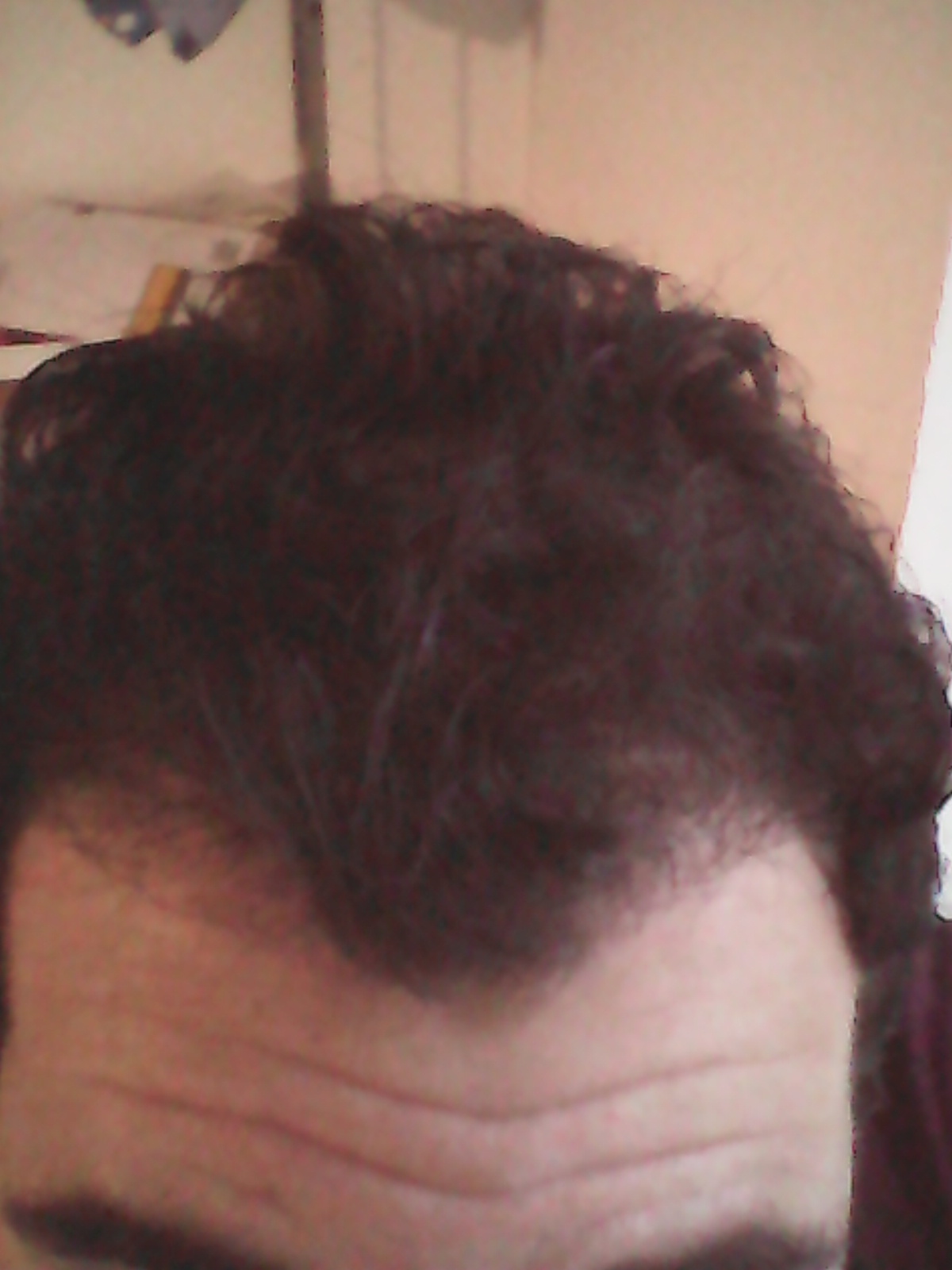 Als jemand bei einem Kommentar fragte, warum die vorderen Haare hoch stehen, hat er geantwortet,dass er die Haare hochgedrückt hat .