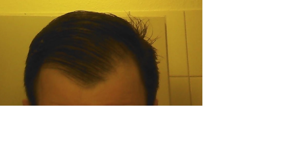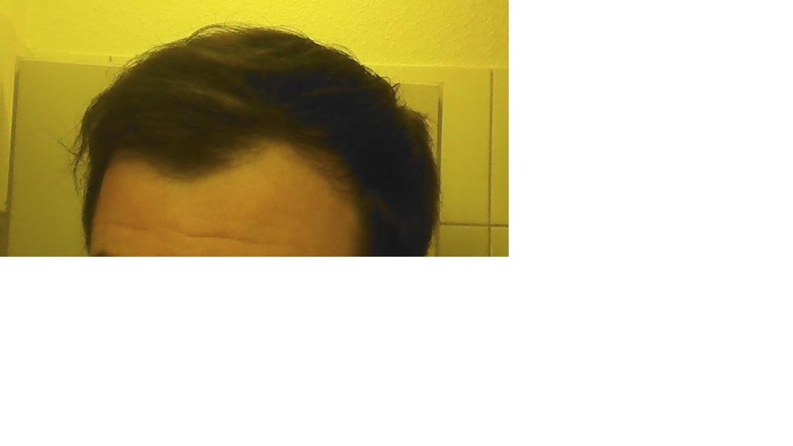 Meine Tonsur ist eigentlich noch recht ordentlich. Die Verdünnung der Haar geht etwa bis zur Mitte des Kopfes. Danach wird es wieder richtig dicht.